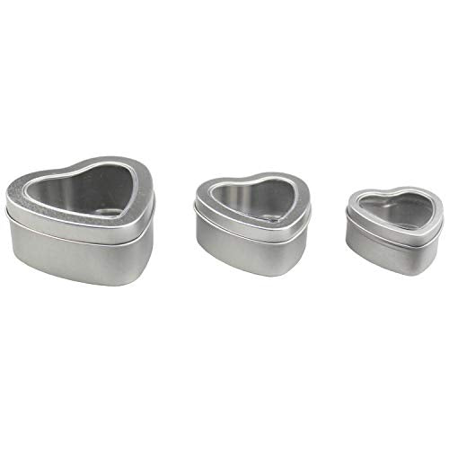 12 Pieces Heart Shaped Empty Metal Tin Cans with Clear Window Lids for Candle Making, Candies, Gifts & Treasures, Mixed Sizes