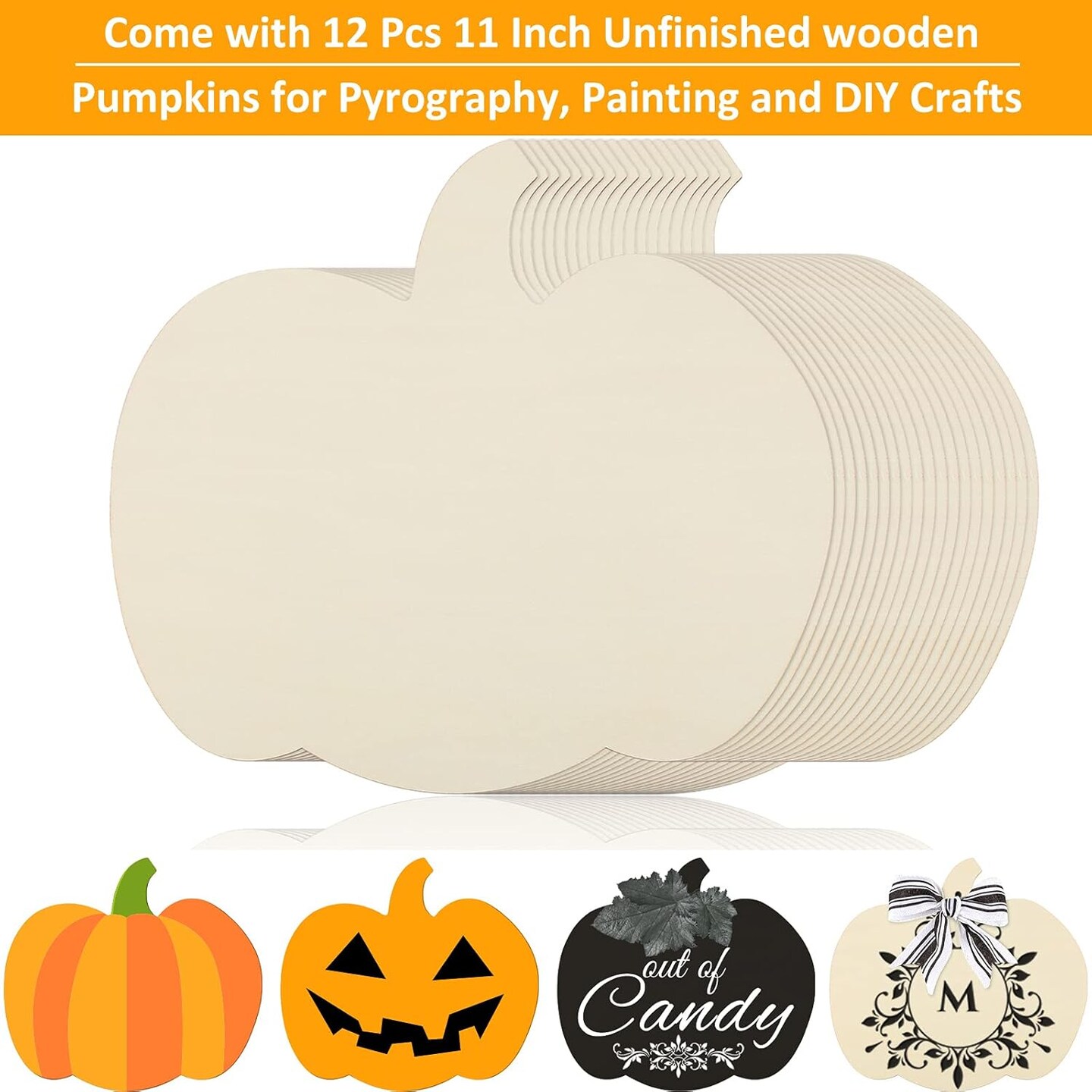 12 Pieces Large Halloween Wooden Pumpkin Cutout