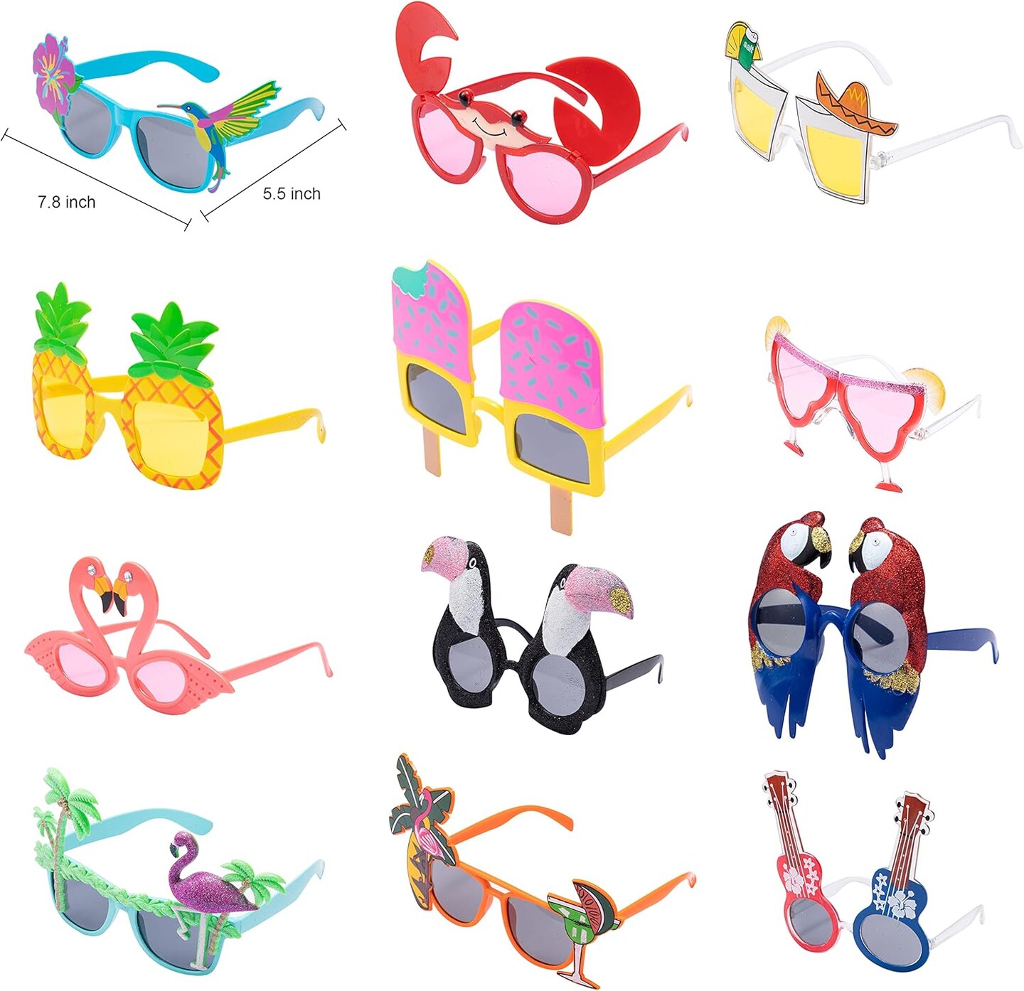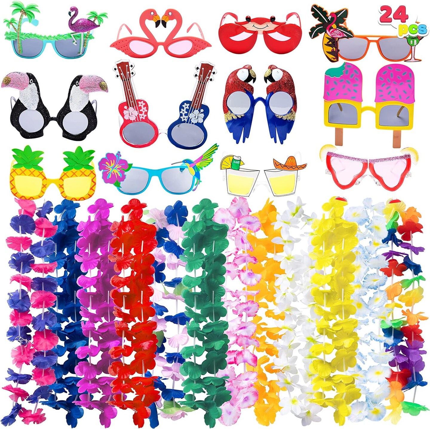 12 Pieces Luau Party Glasses and 12 Pieces Hawaiian Leis, Flowers Leis Garlands Novelty Sunglasses, Tropical Birthday Summer Beach Party Decoration Supplies