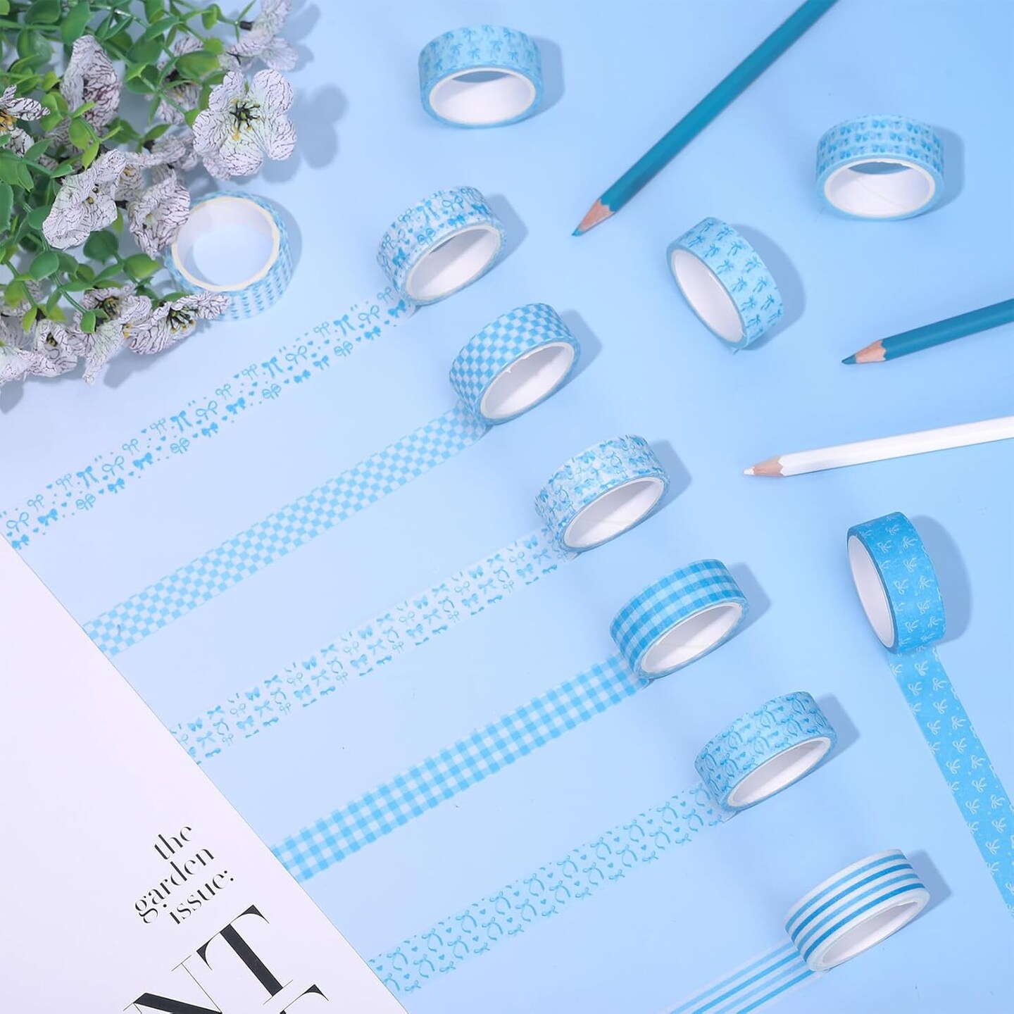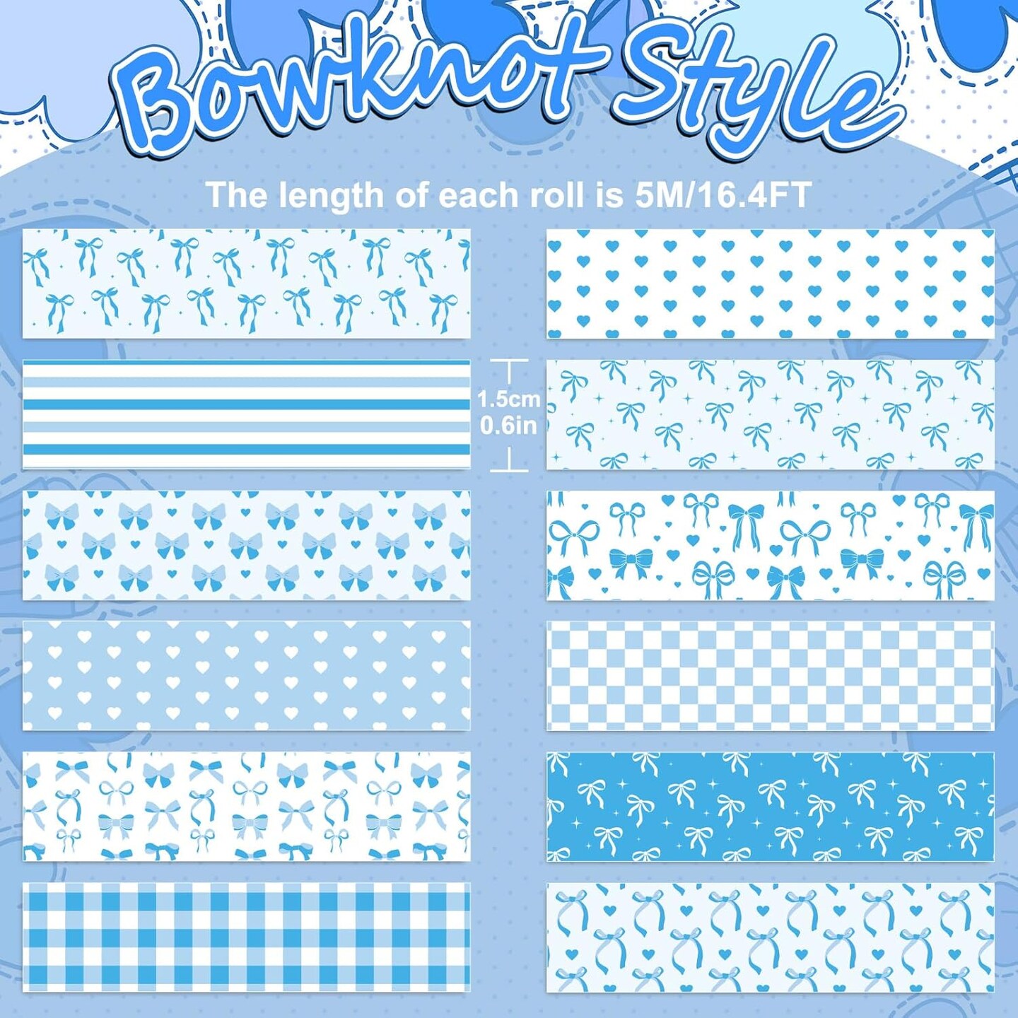 12 Rolls Blue Bow Washi Tape (Blue)
