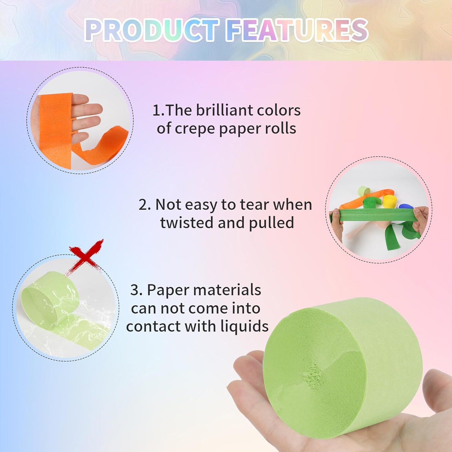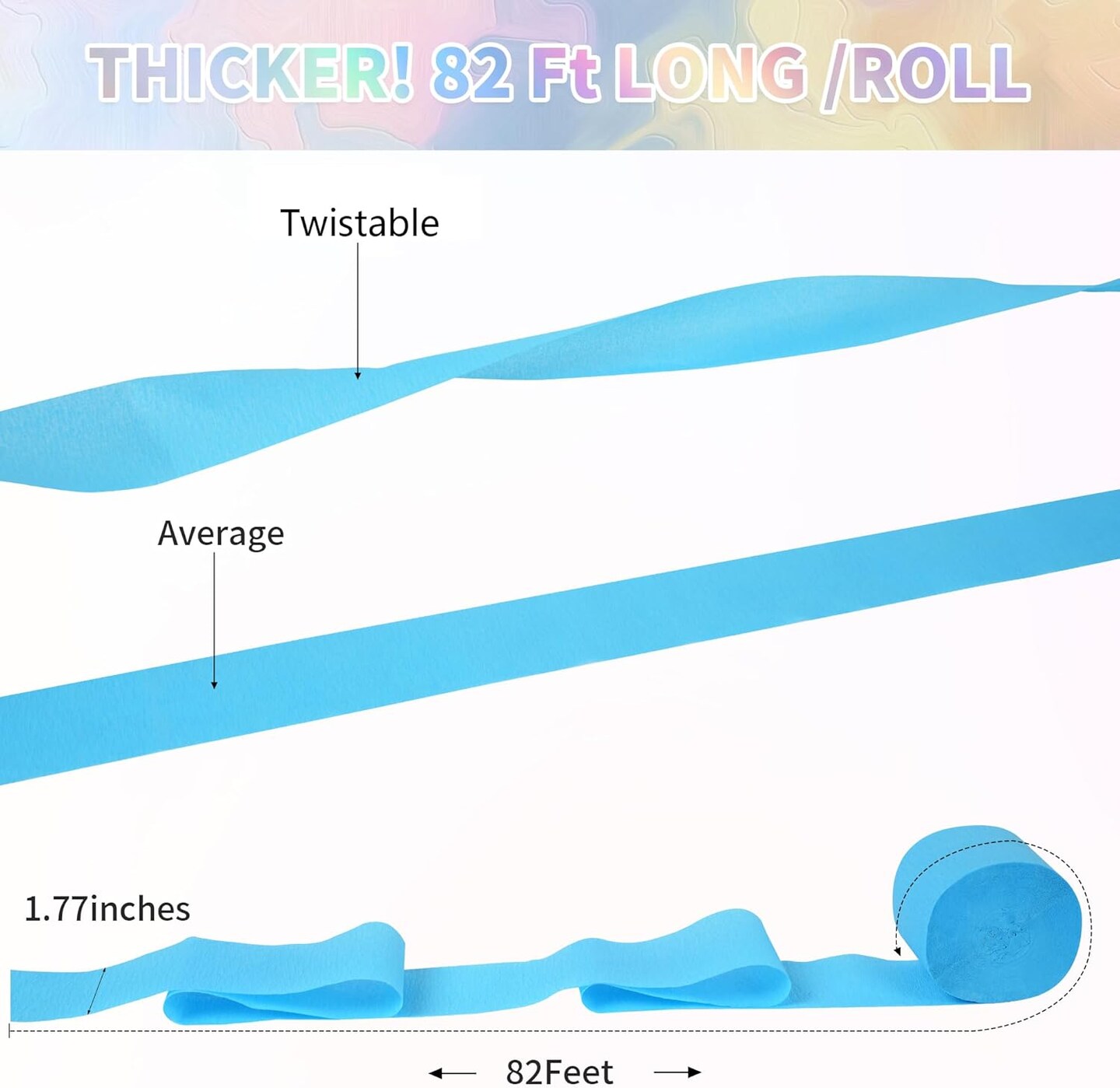 12 Rolls Crepe Paper Streamers - 12 Colors, Colorful Birthday Streamers for Birthday, Wedding, Baby Shower, Ocean, Rainbow, Bachelorette Party Decorations