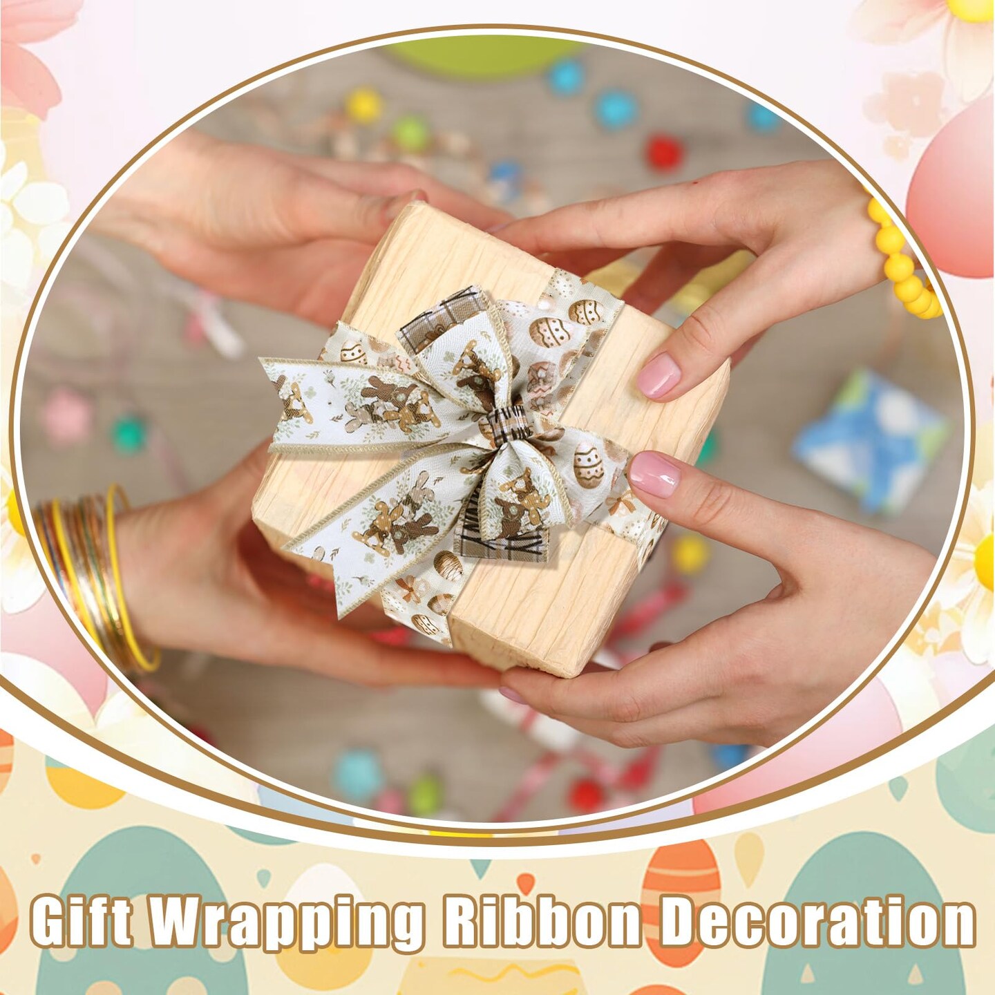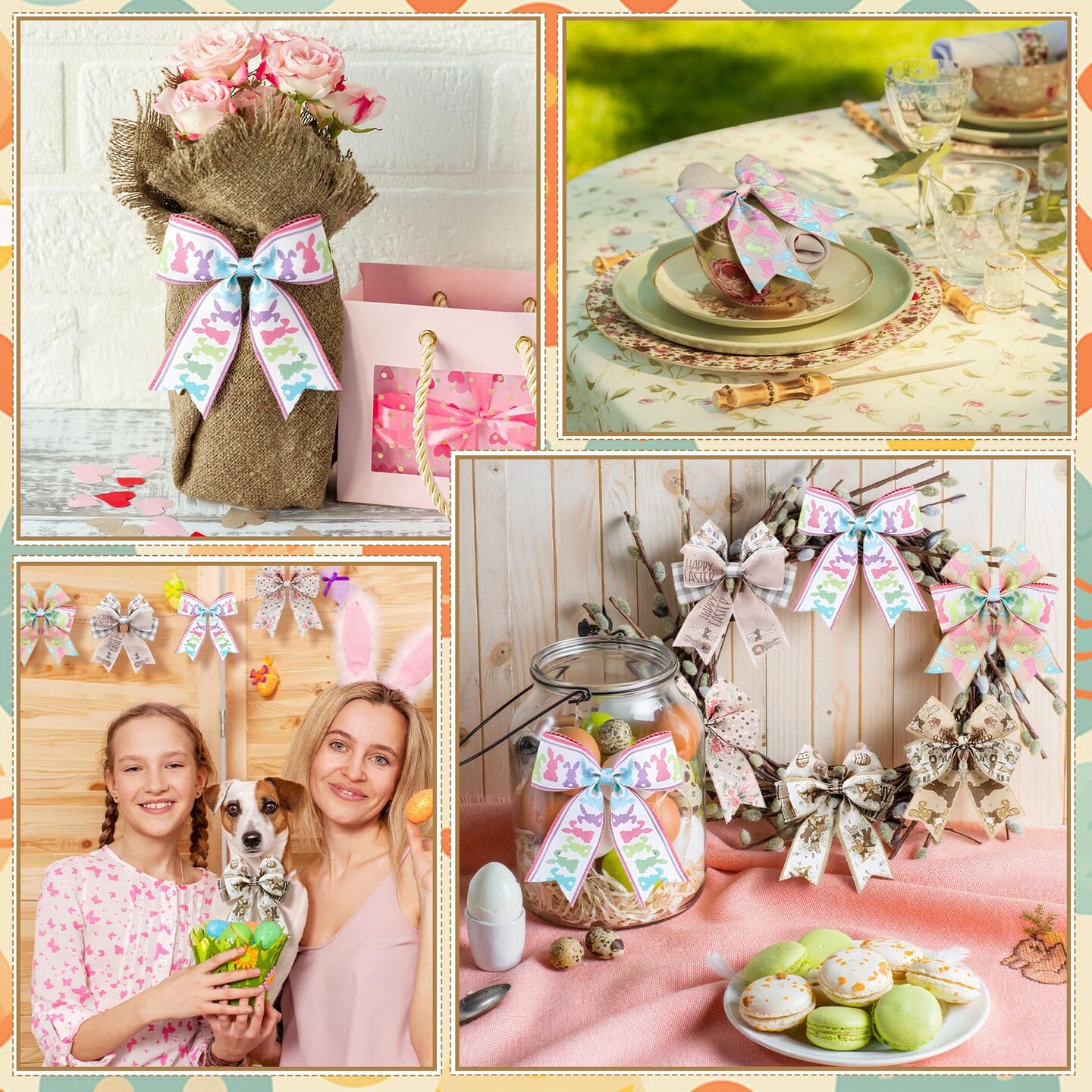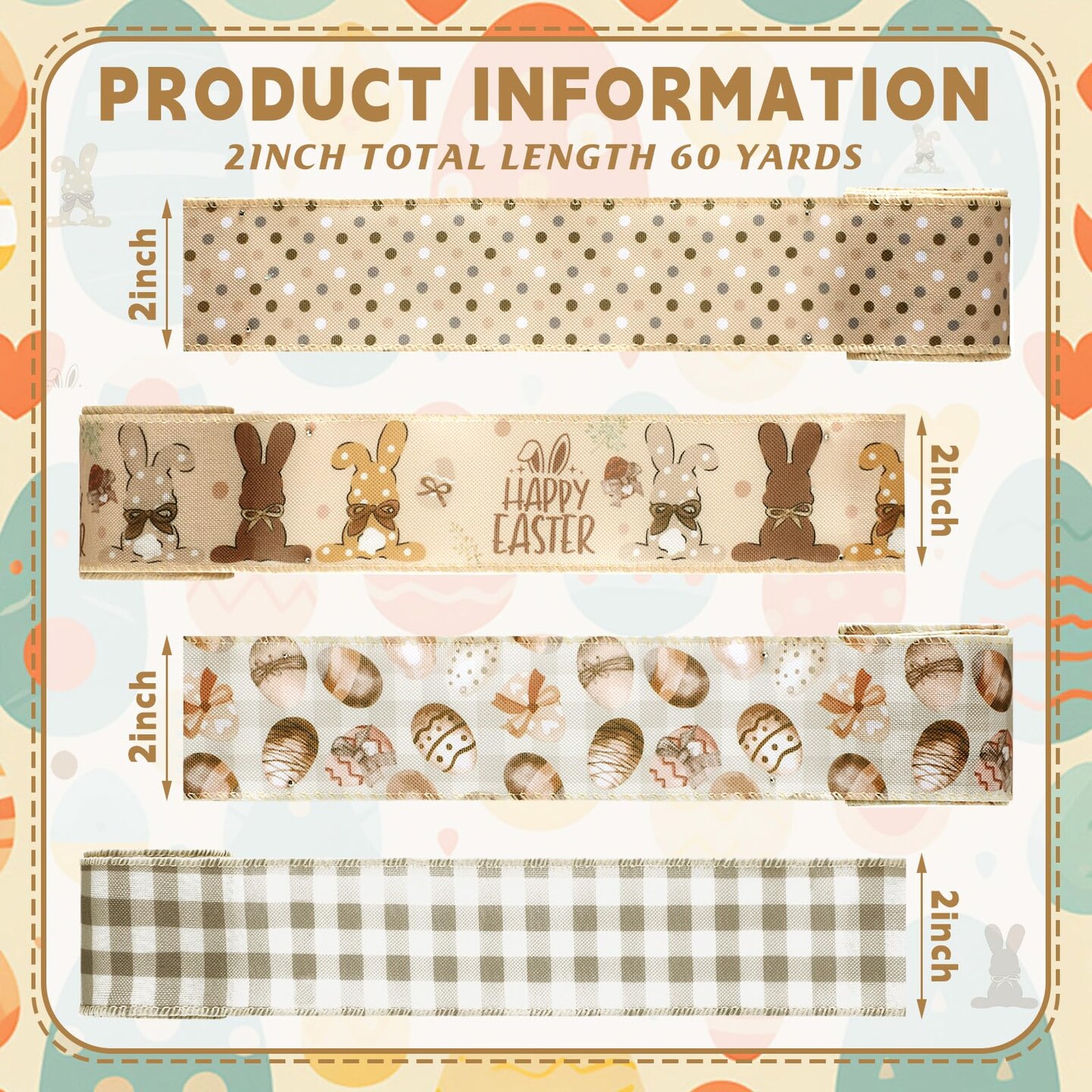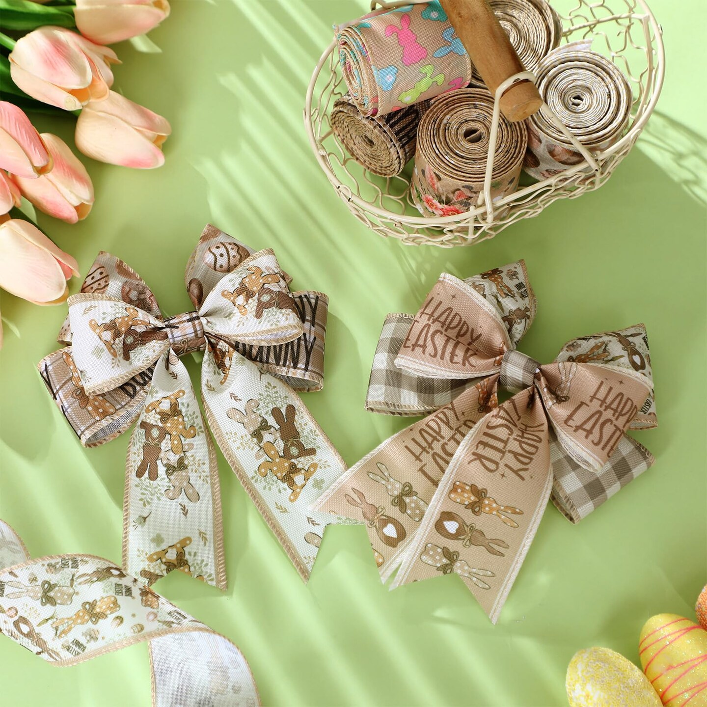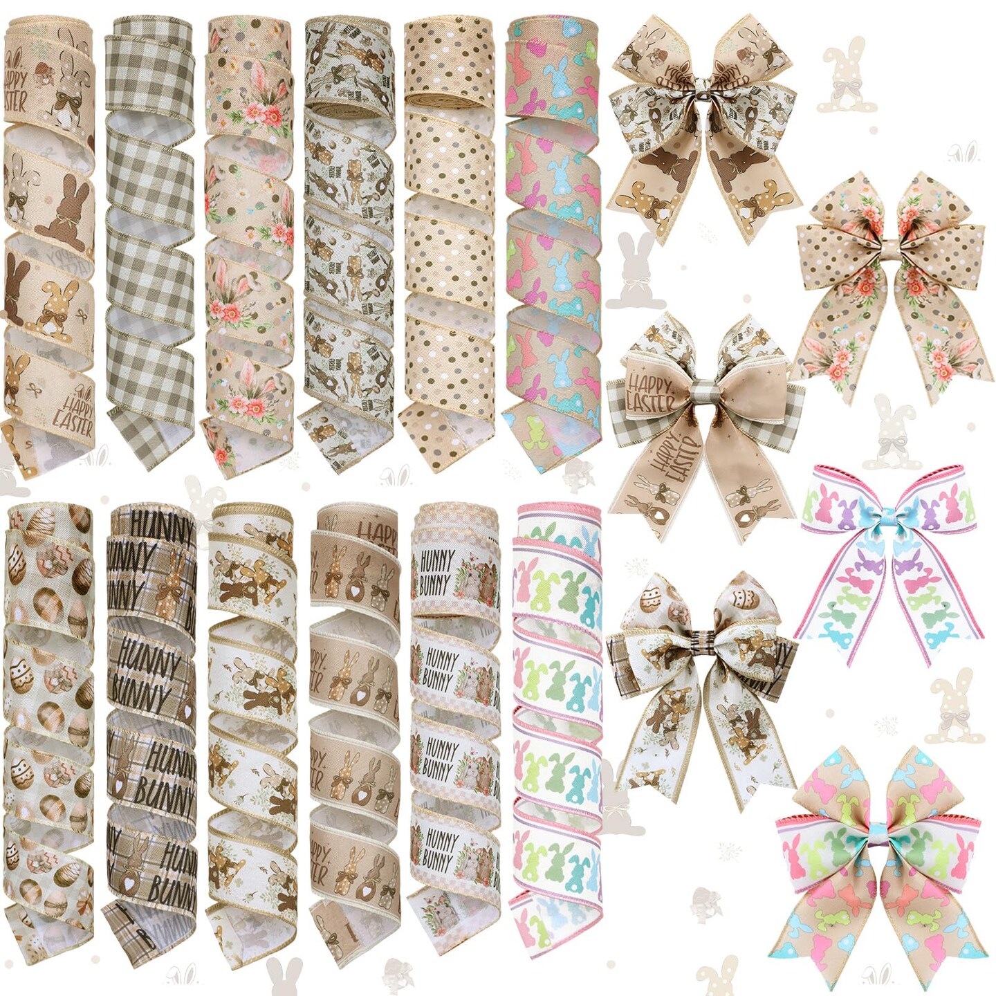 12 Rolls Easter Bunny Wired Edge Ribbon for Wreaths 2 Inch x 60 Yards Happy Easter Floral Bunny Print Grosgrain Ribbon for Bow Gift Bow Crafts Party Supplies 12 Styles