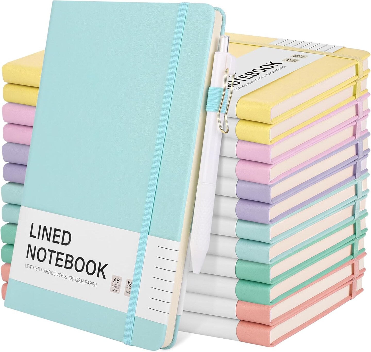 12 Set Lined Notebook Journals with Pens A5 Notebooks 100 GSM College Ruled Hardcover Notebook PU Leather Notepad with Pen Holder for Office School