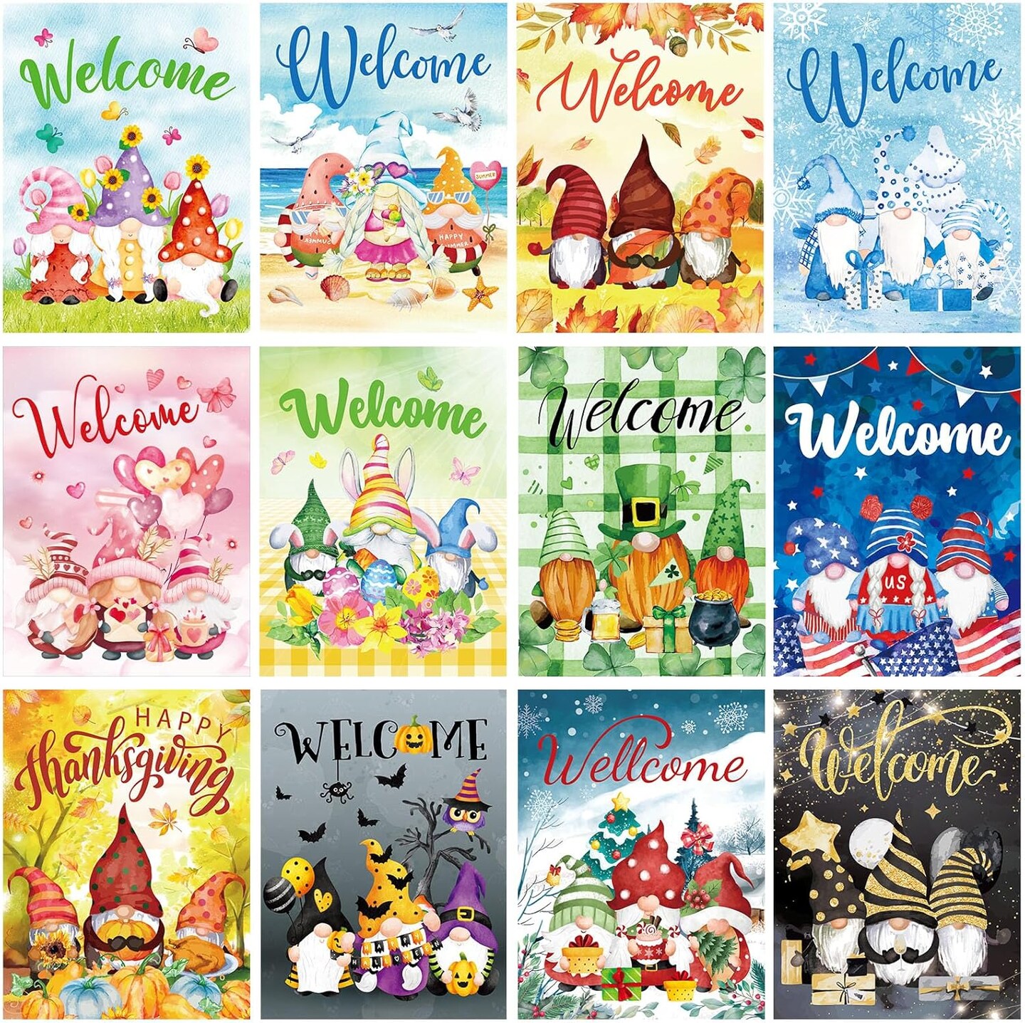12 Sets Seasonal Diamond Painting Kits Full Drill Rhinestones Art Crafts Cute Colorful Cartoon Diamond Painting for Home Wall Decor Art Craft Gifts(Welcome)