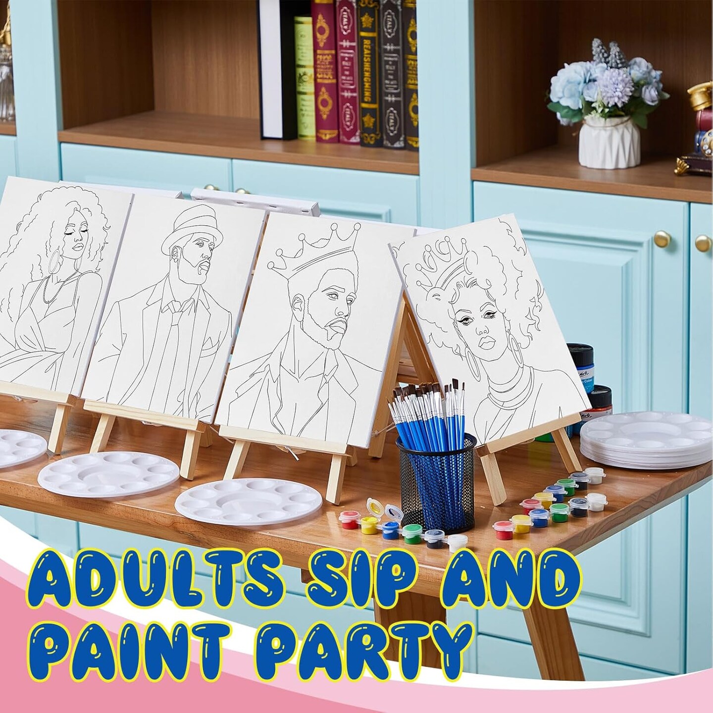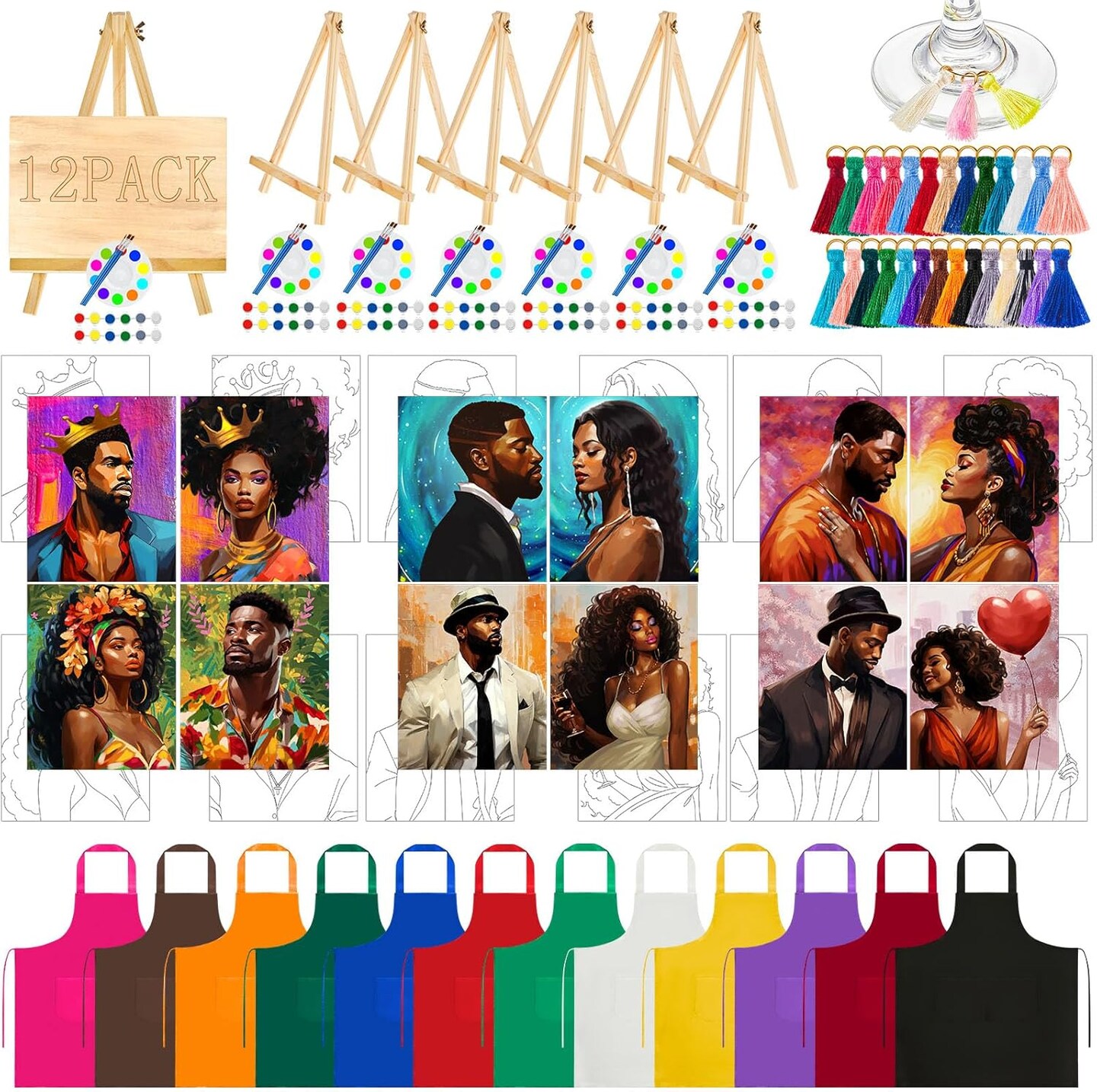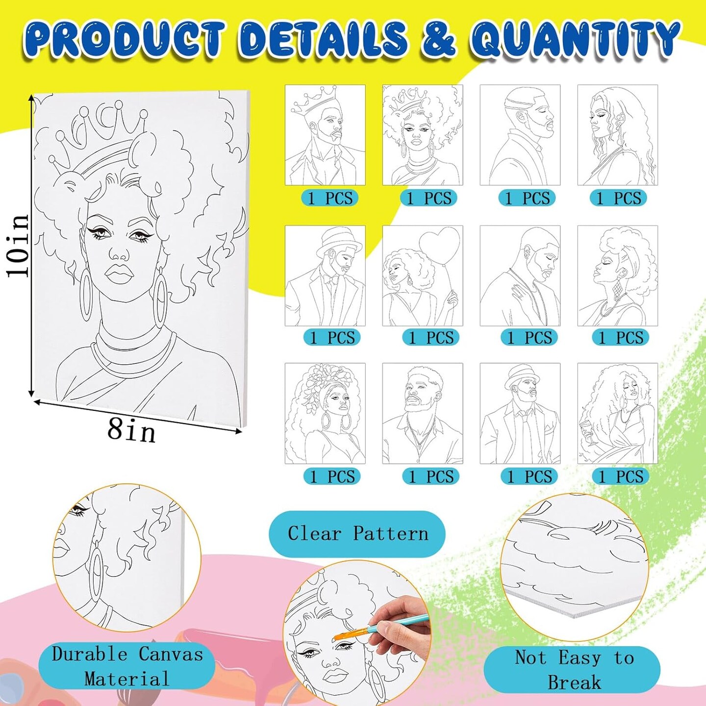 12 Sets Sip and Paint Kit - Afro Couple Pre Drawn Canvas