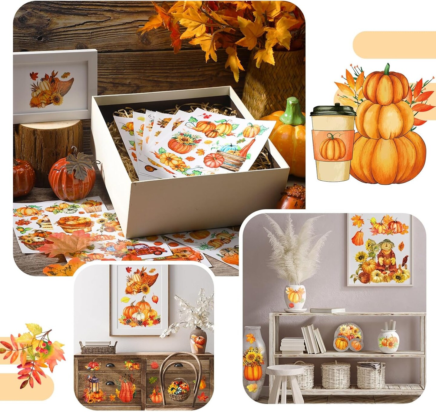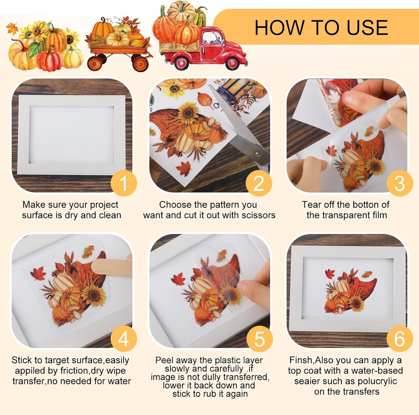 12 Sheets Fall Thanksgiving Rub on Transfers for Crafts (Multicolor)