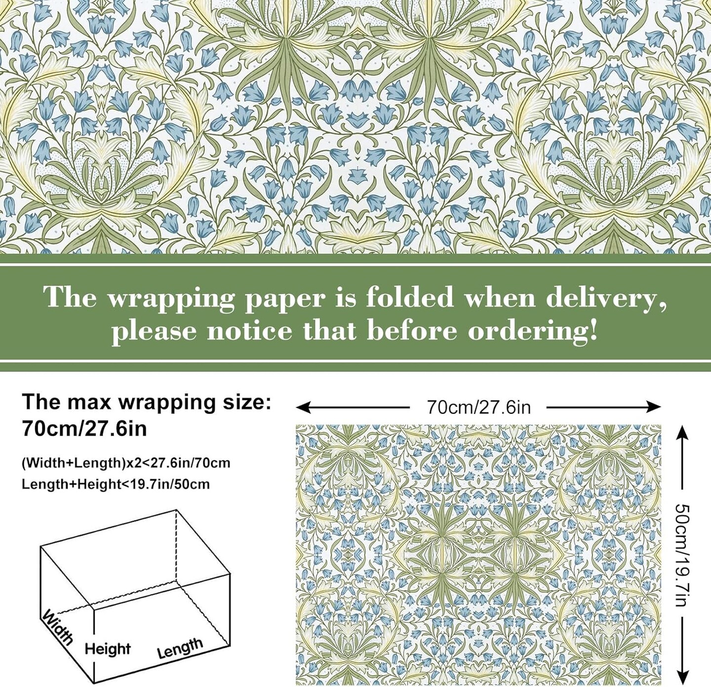 12 Sheets William Morris Floral Wrapping Paper – Greenery Gift Wrap, 19.7"x27.6" for DIY Crafts, Wedding & Birthday