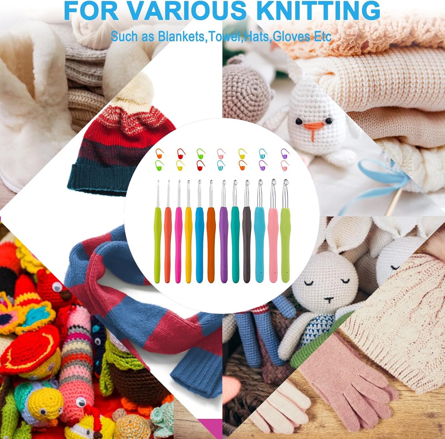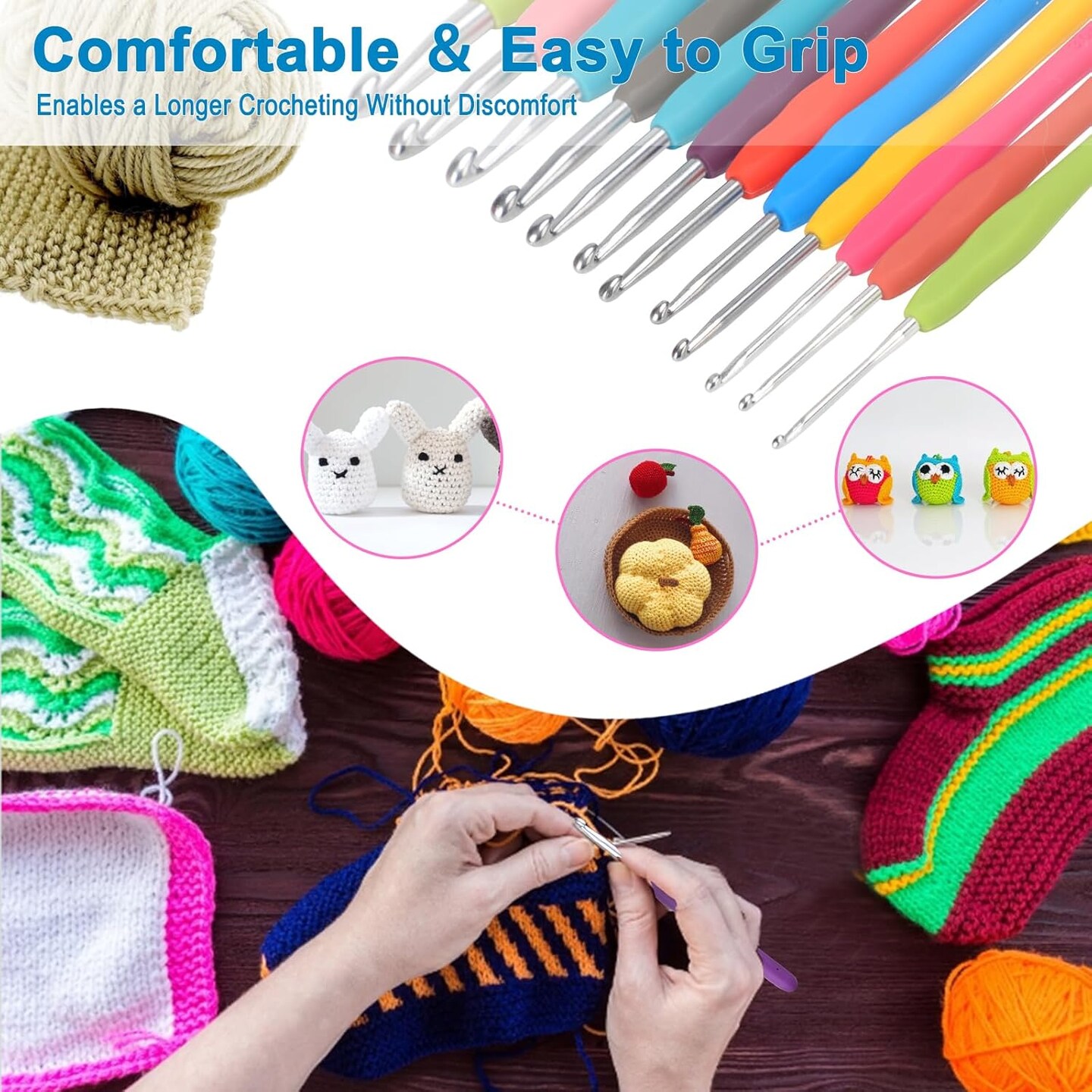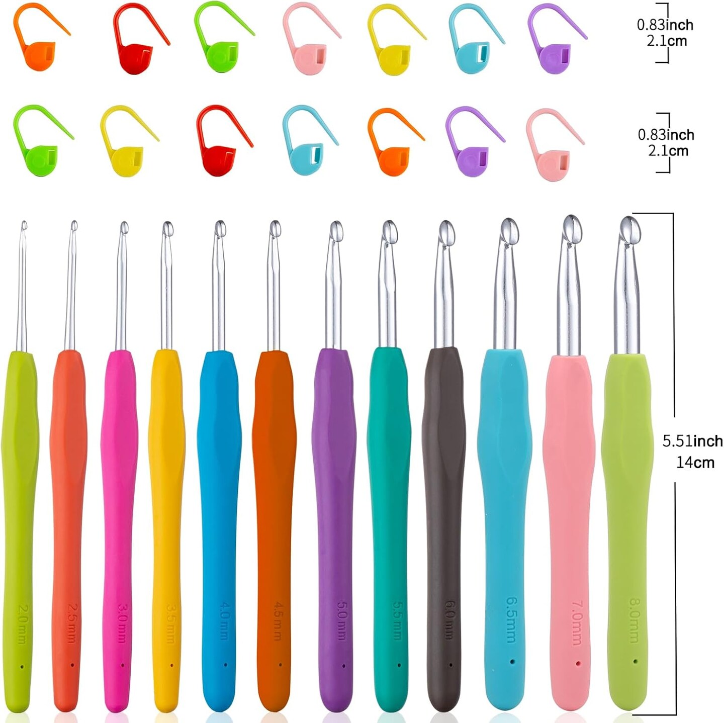 12 Sizes Crochet Hooks Set 2.0–8.0mm Ergonomic Crochet Needles