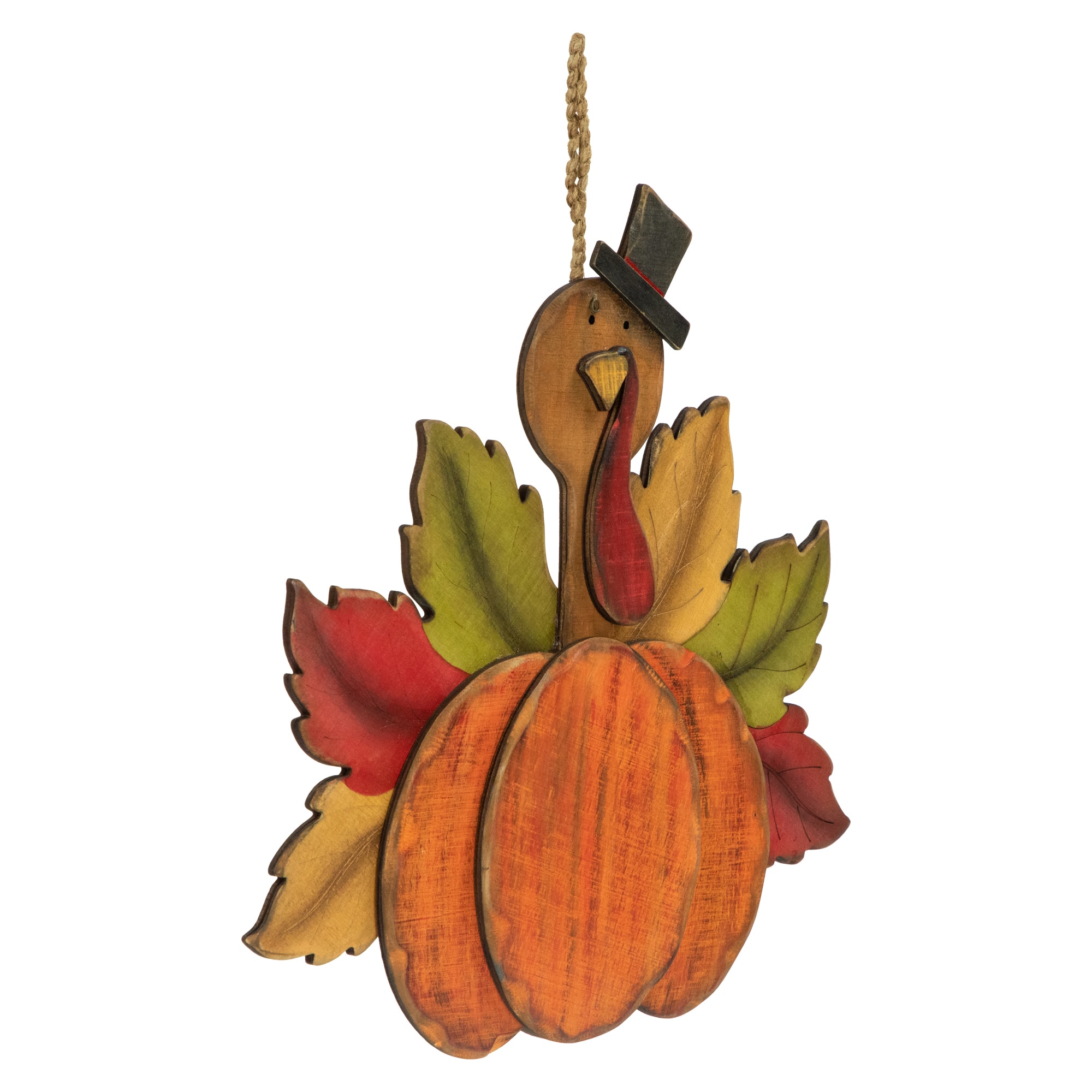 12" Turkey with Pumpkin Fall Harvest Hanging Decoration