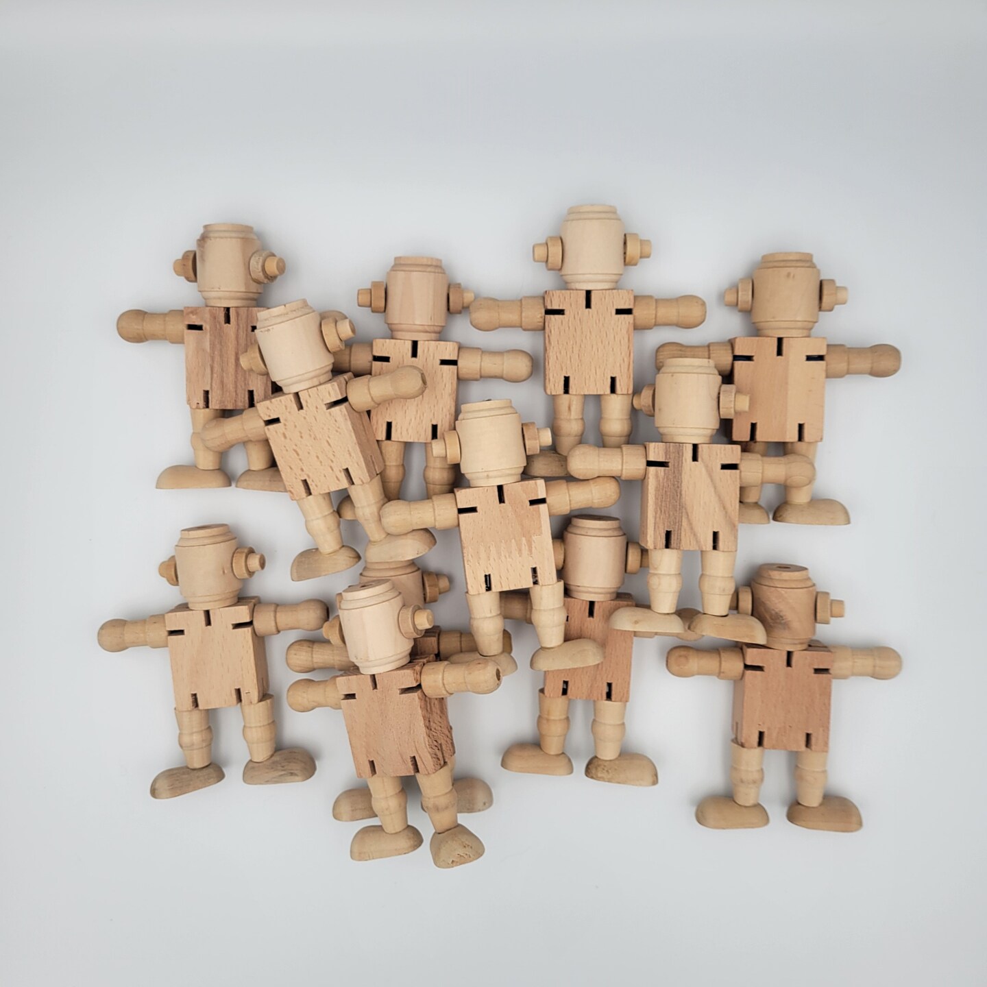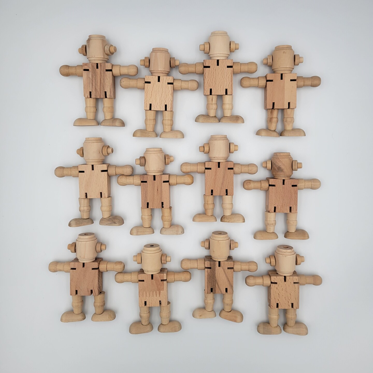 12 Unfinished Wooden Robot Dolls, 12 Count