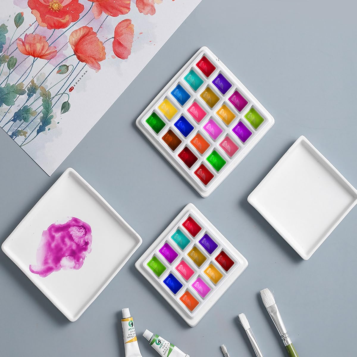 12 Wells Ceramic Palette with Covers Porcelain Paint Palette Mixing Tray for Painting Watercolor Gouache Arts & Crafts Accessories Organizer Mixing Colors