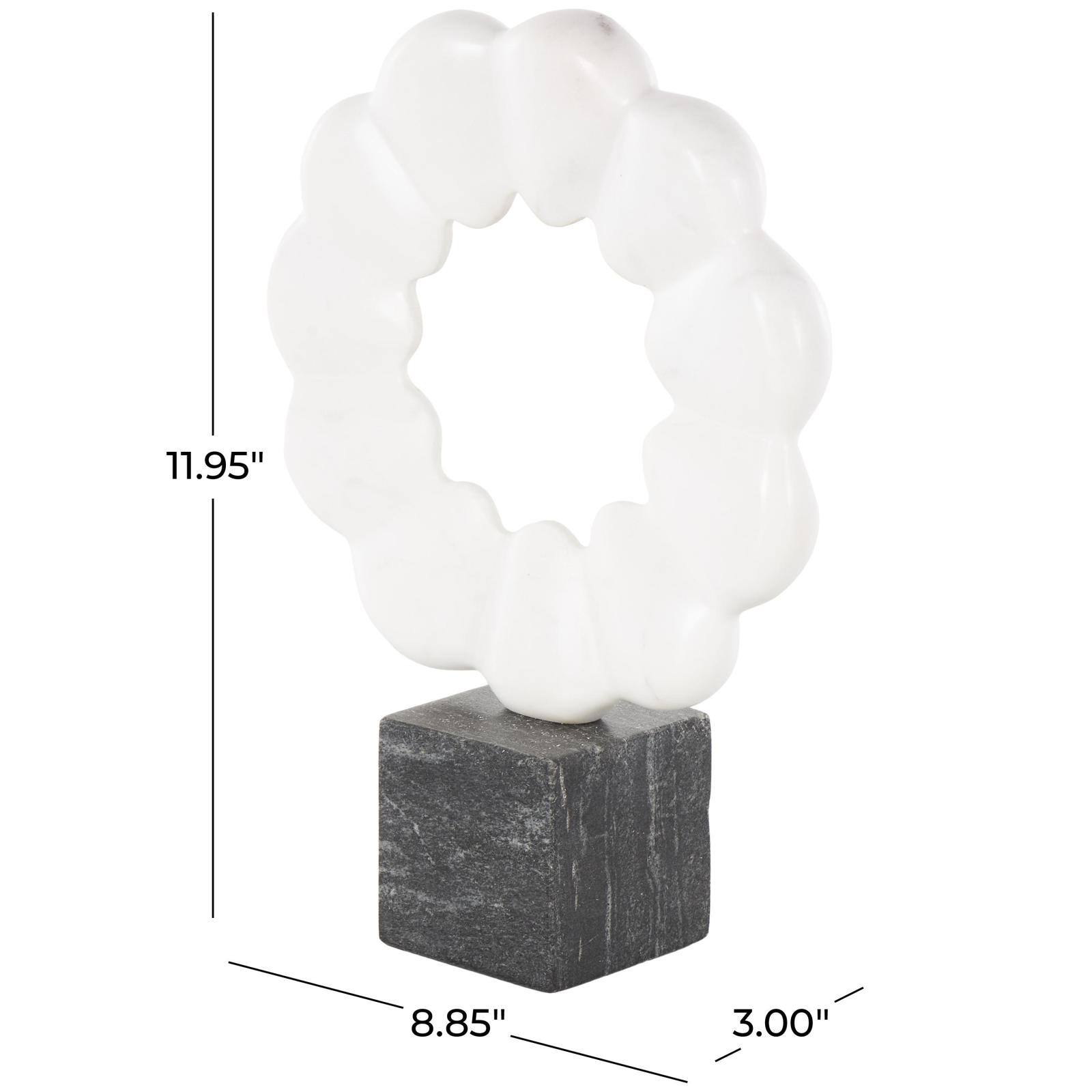 12" White & Black Marble Geometric Floral Inspired Ring Sculpture