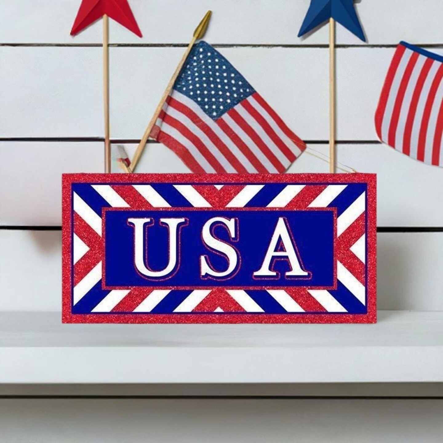 12" Wooden Sign: USA