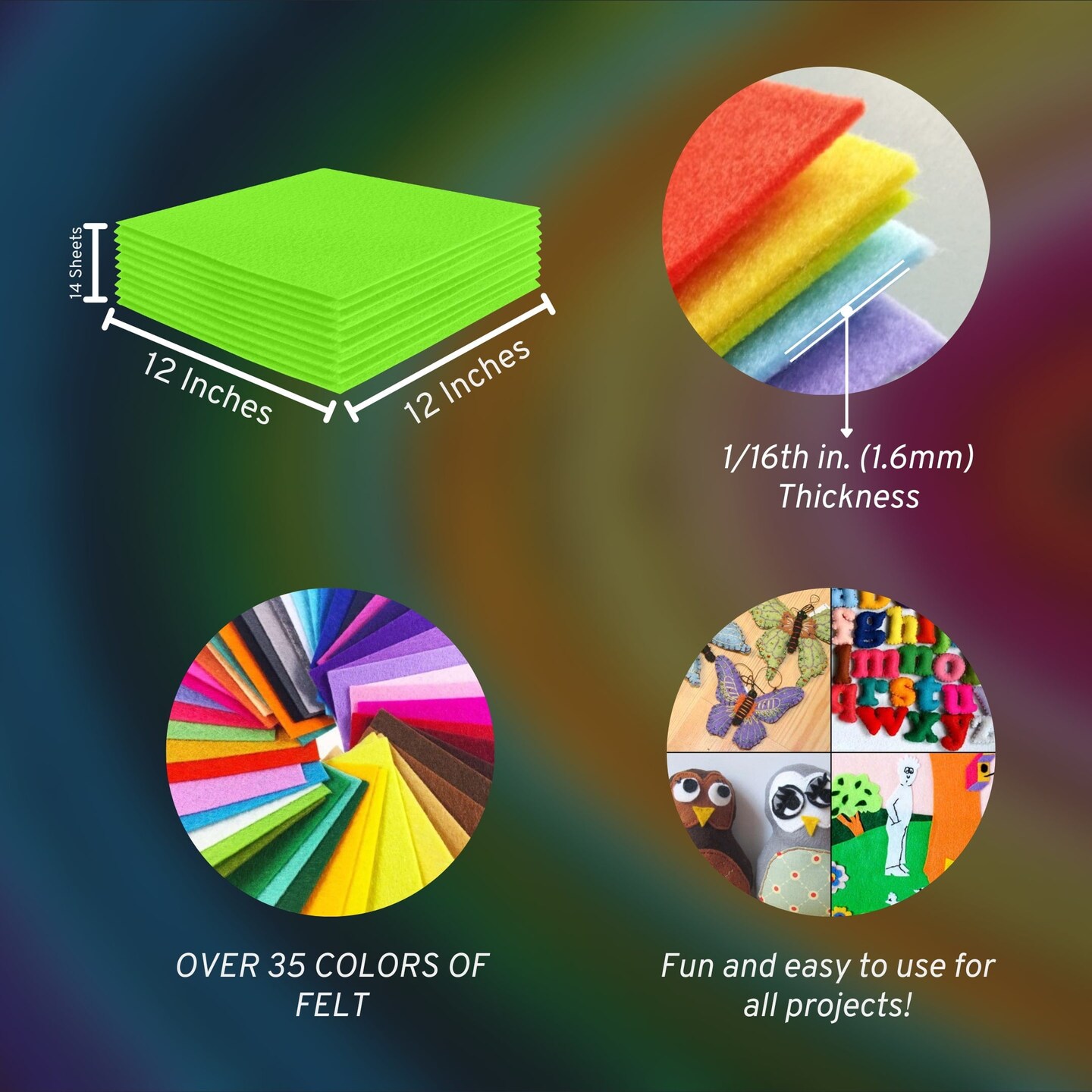12" x 12" Acrylic Felt Sheets by FabricLA, Neon Green A54