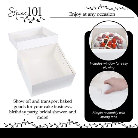 12 x 12 x 6" White Bakery Boxes with Window Pastry Boxes for Cakes, Cookies and Desserts