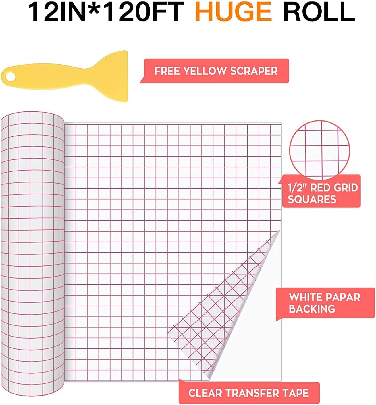 12" X 120 ft w/Red Alignment Grid Transfer Paper for Adhesive Vinyl