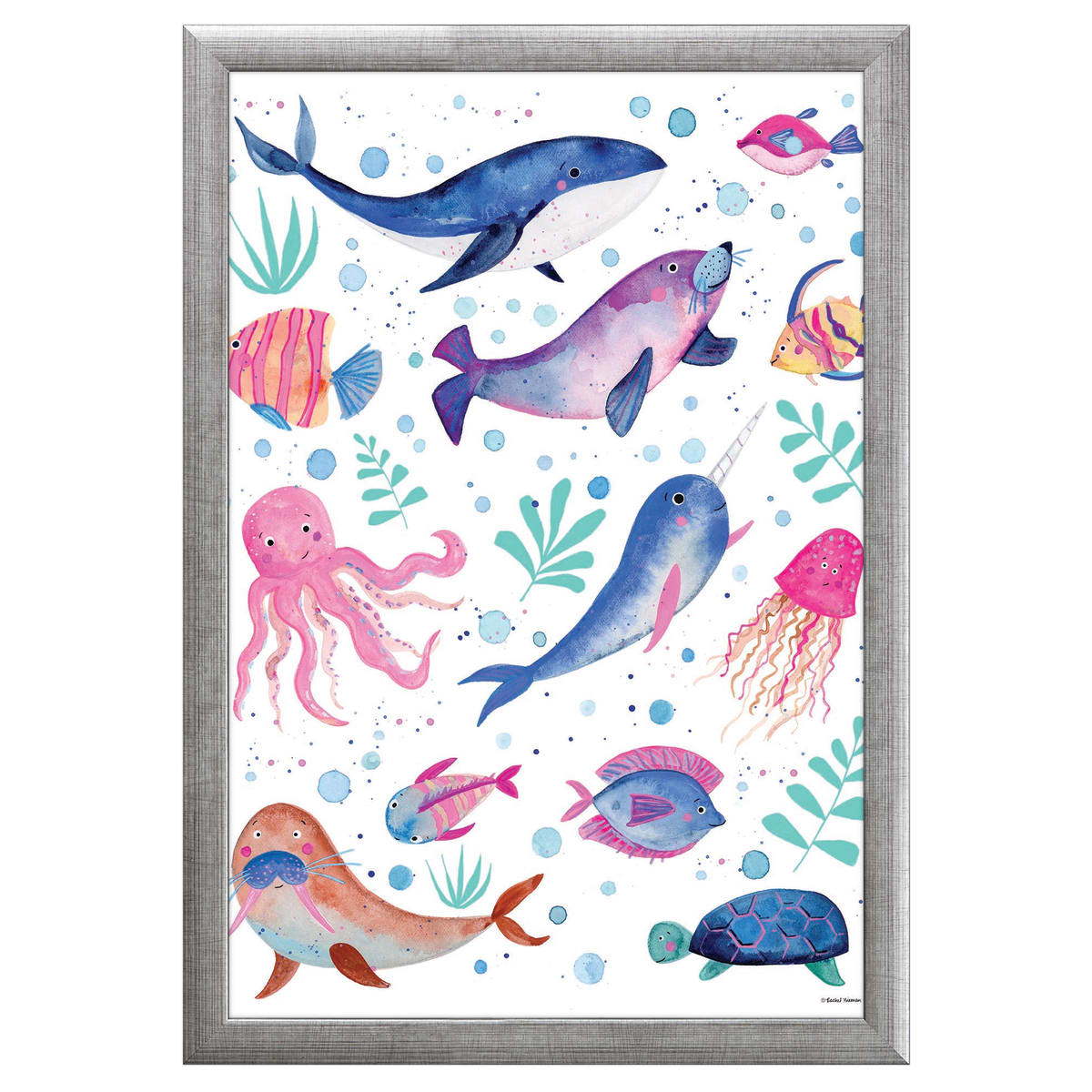 12" x 16" Cute and Quirky Nautical Animals Framed Wall Art, Contemporary Home Décor for Baby or Child's Room, Glass Facing and Hanging Hardware