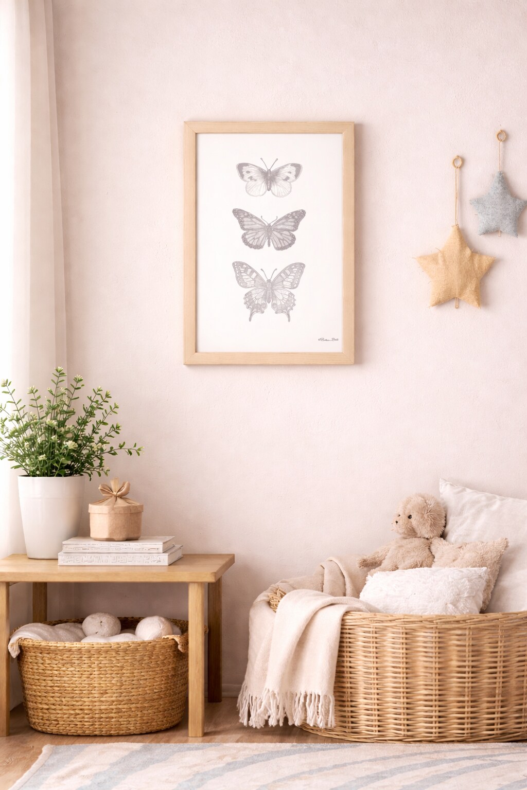 12" x 16" Nursery Butterfly Trio Framed Wall Art, Contemporary Home Décor, Glass Facing and Hanging Hardware Included