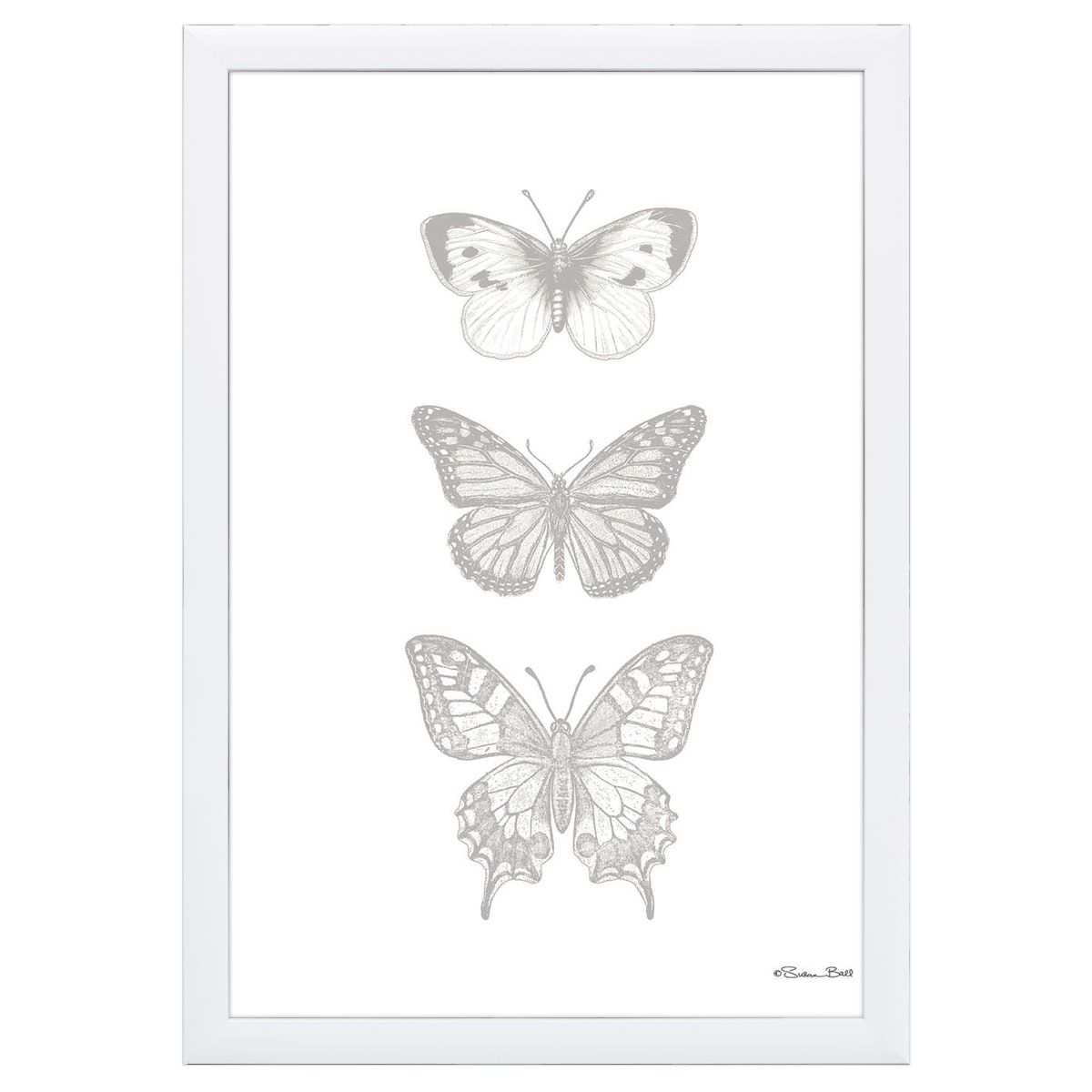 12" x 16" Nursery Butterfly Trio Framed Wall Art, Contemporary Home Décor, Glass Facing and Hanging Hardware Included