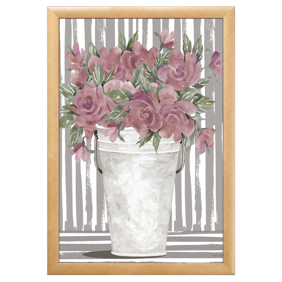12" x 16" Pink Posies II Framed Wall Art, Contemporary Nature Home Décor, Glass Facing and Hanging Hardware Included