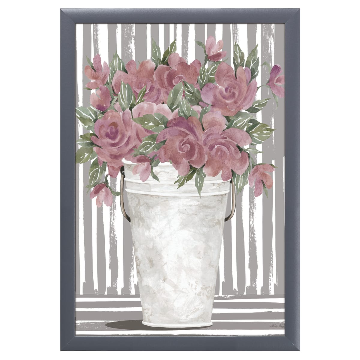 12" x 16" Pink Posies II Framed Wall Art, Contemporary Nature Home Décor, Glass Facing and Hanging Hardware Included