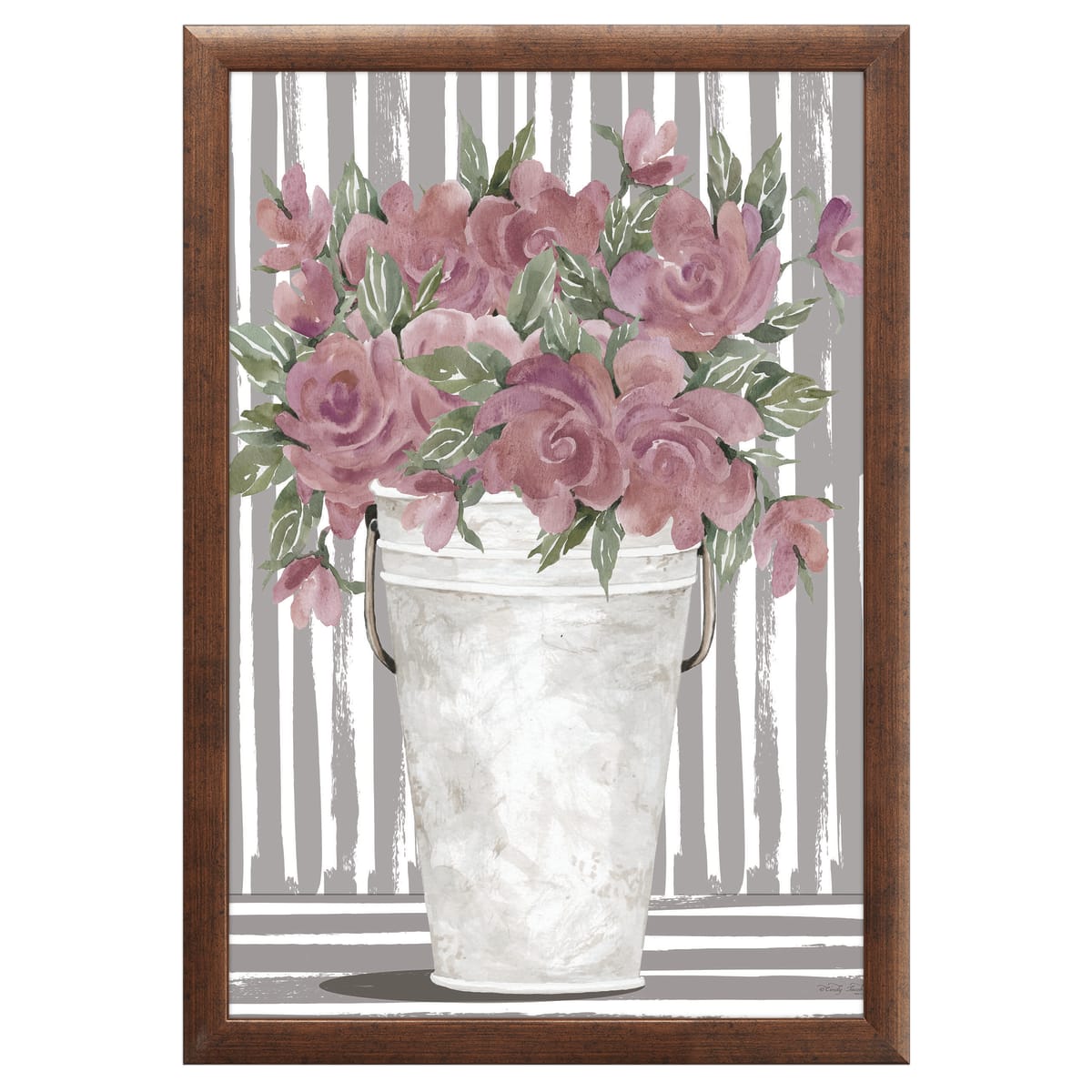 12" x 16" Pink Posies II Framed Wall Art, Contemporary Nature Home Décor, Glass Facing and Hanging Hardware Included