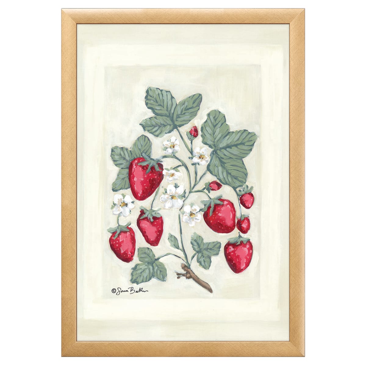 12" x 16" Sweet Summer Strawberries I Framed Wall Art, Contemporary Kitchen Home Décor, Glass Facing and Hanging Hardware Included