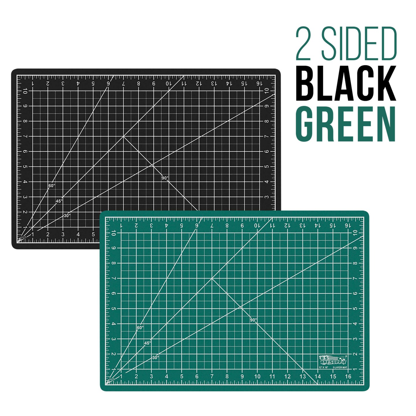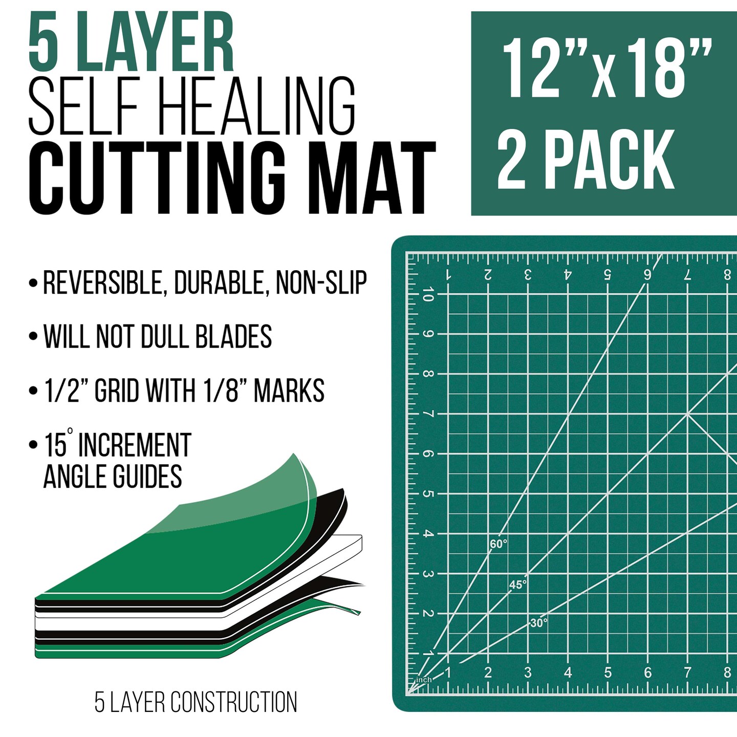 12" x 18" Self-Healing Cutting Mat 5-Ply (2 Pack) - Double-Sided Green/Black Craft Mat, Non-Slip Cutting Mats for Crafts, Sewing, Quilting, Scrapbooking