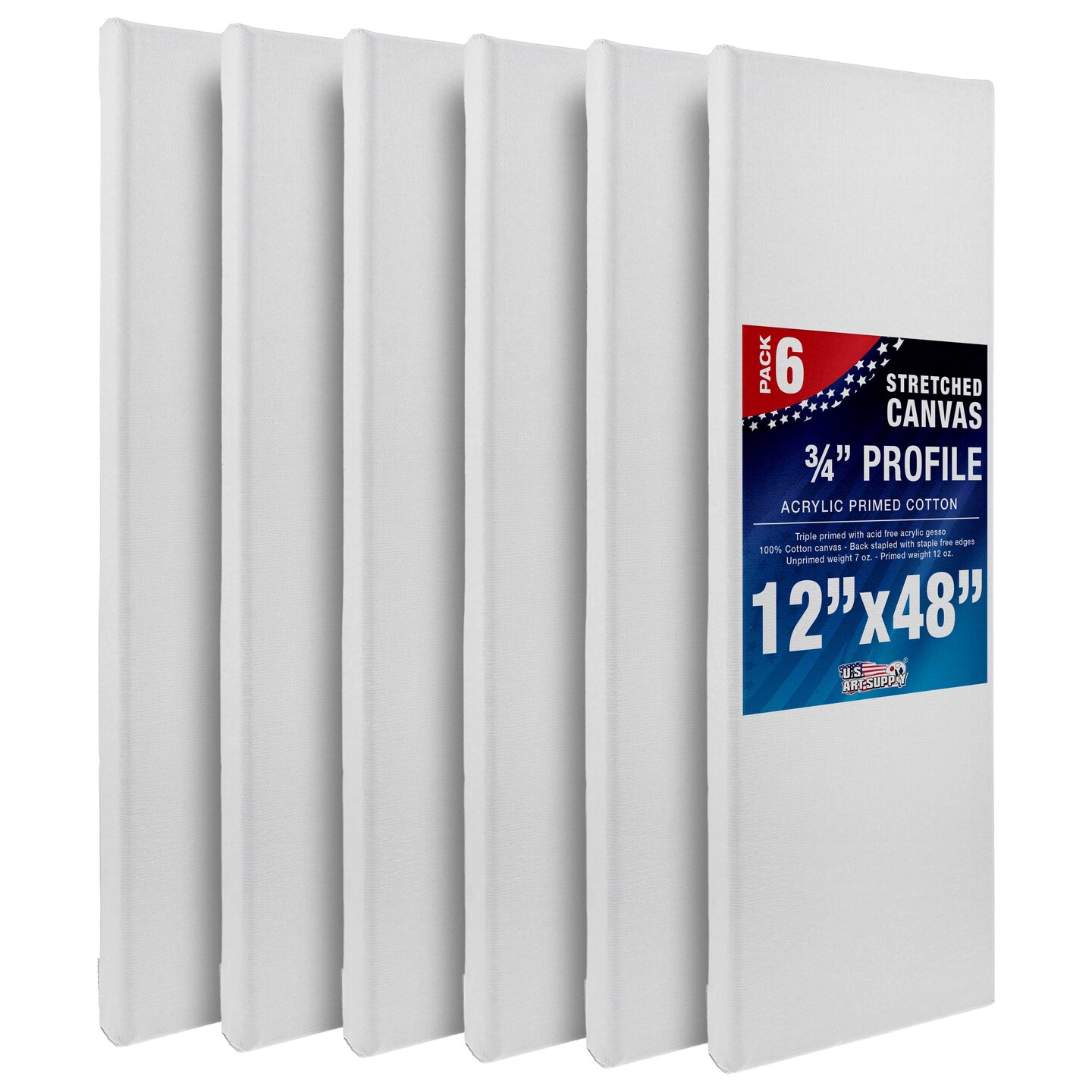 12 x 48 inch Stretched Canvas 12-Ounce Triple Primed, 6-Pack - Professional Artist Quality White Blank 3/4" Profile, 100% Cotton, Heavy-Weight Gesso