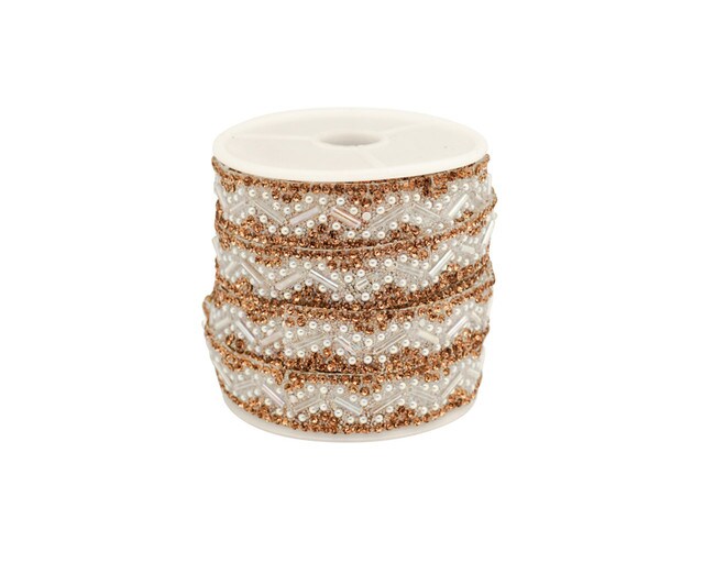 1/2" x 5 Yards Gold Crystal Cluster Iron-On Rhinestone Trim Pack of 1