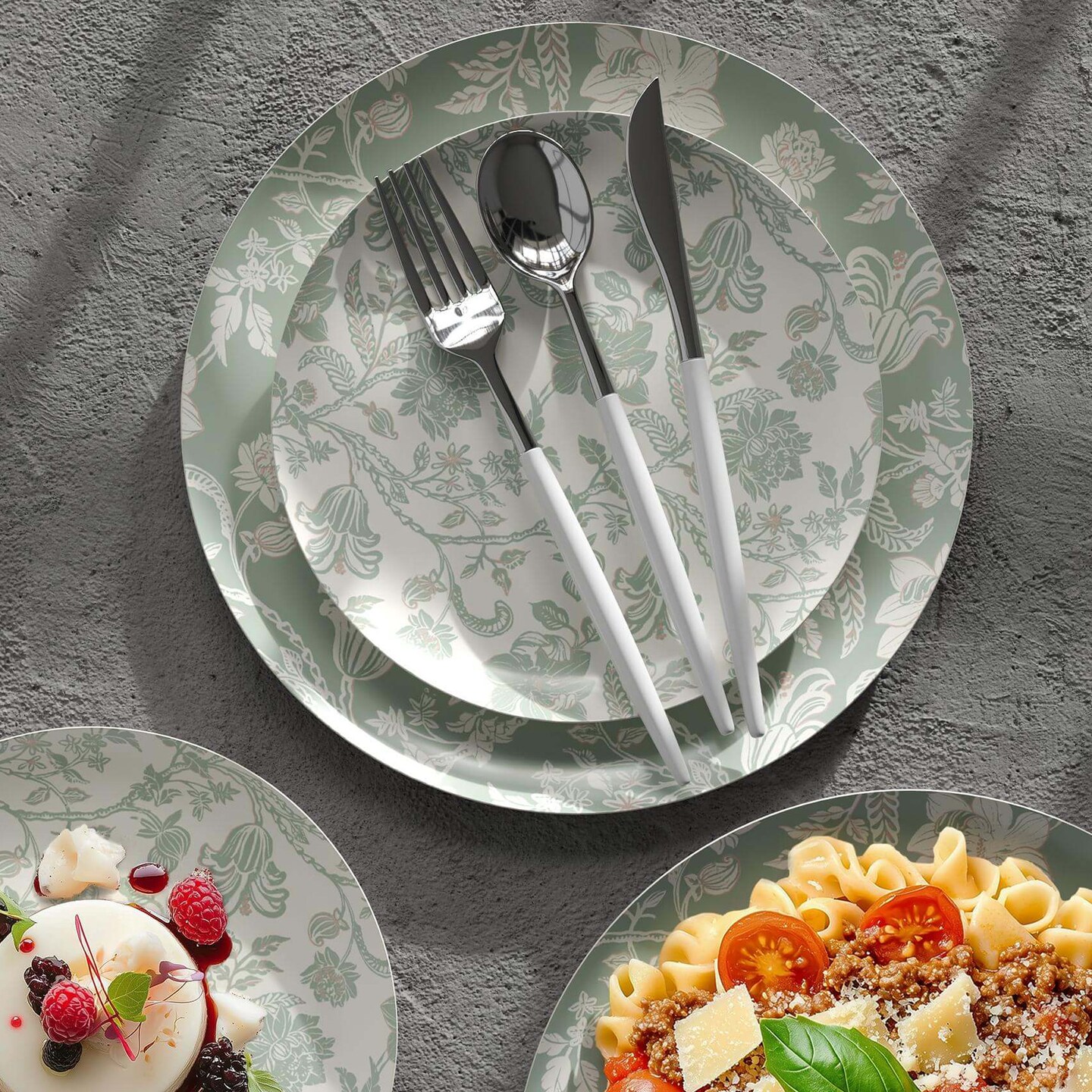 120 Count Earthtrends Gracy Green White Paper Plates Durable 10 Inch Disposable Supplies