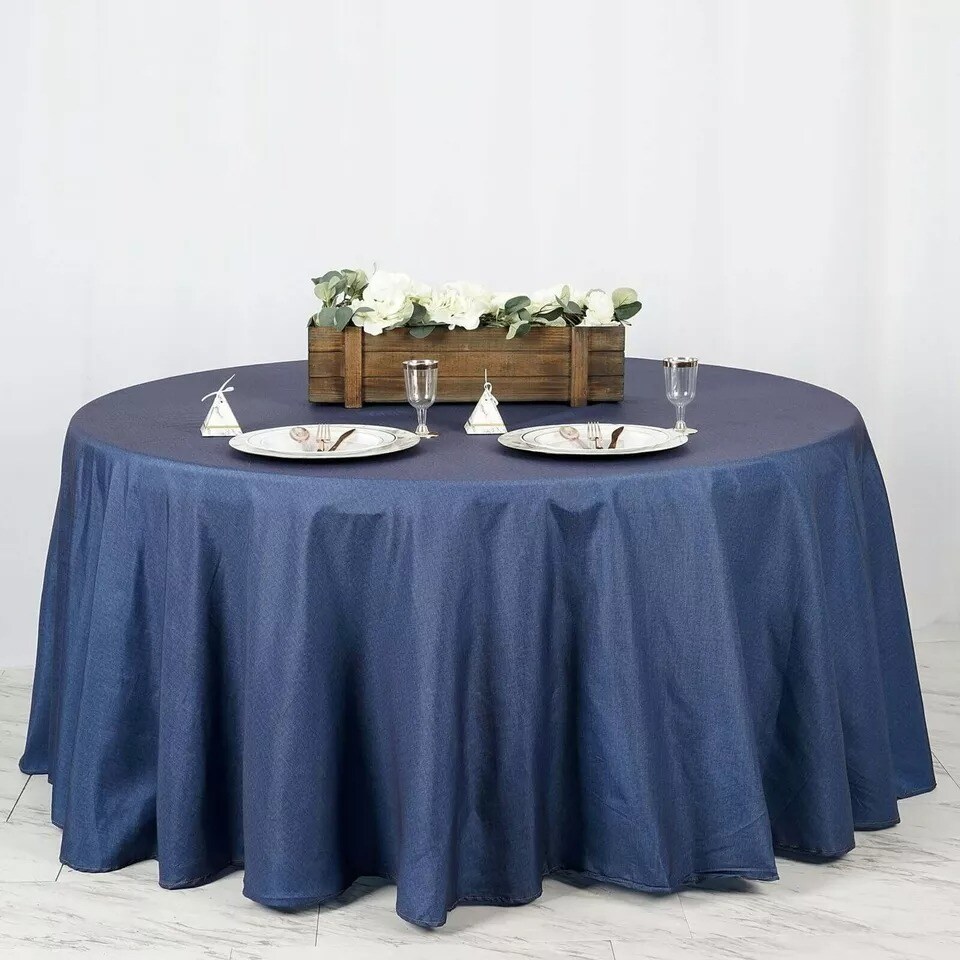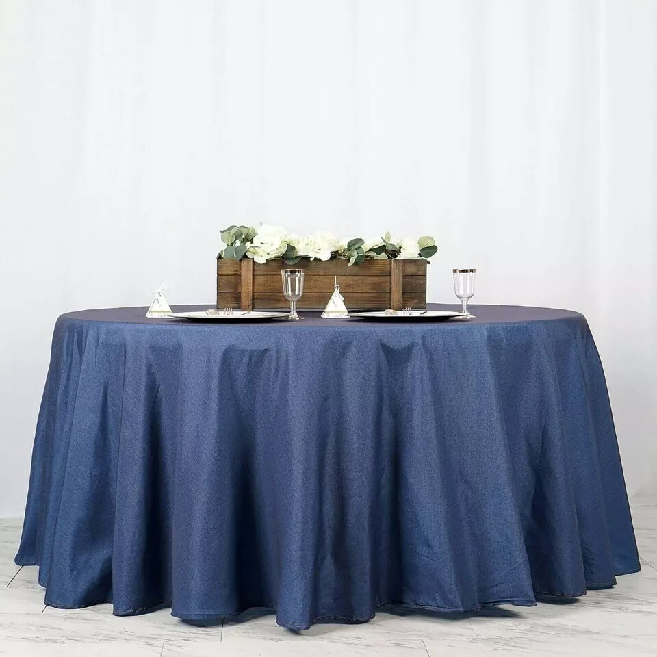 120" Dark Blue Faux Denim Polyester Round Tablecloth Wedding Decorations