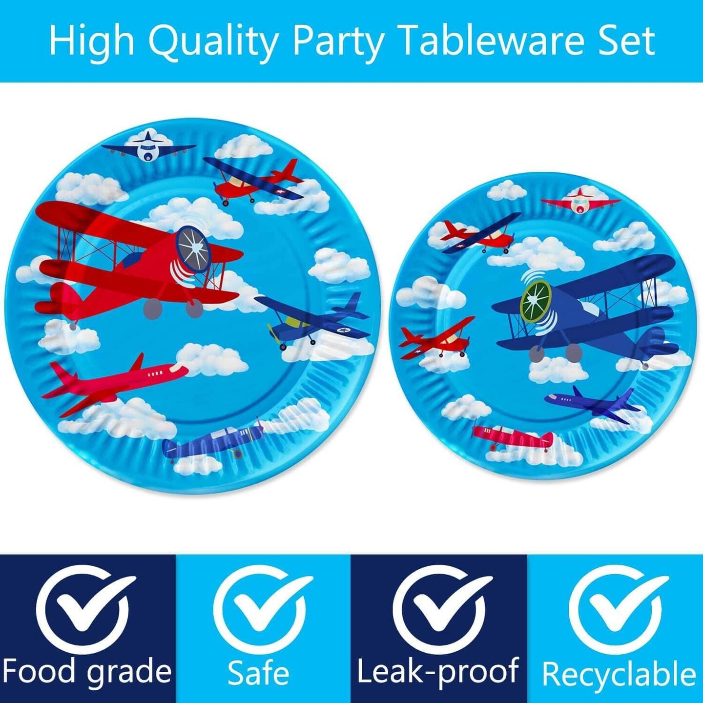 120 Pcs Airplane Birthday Party Supplies, Includes Paper Plates Cups Napkins