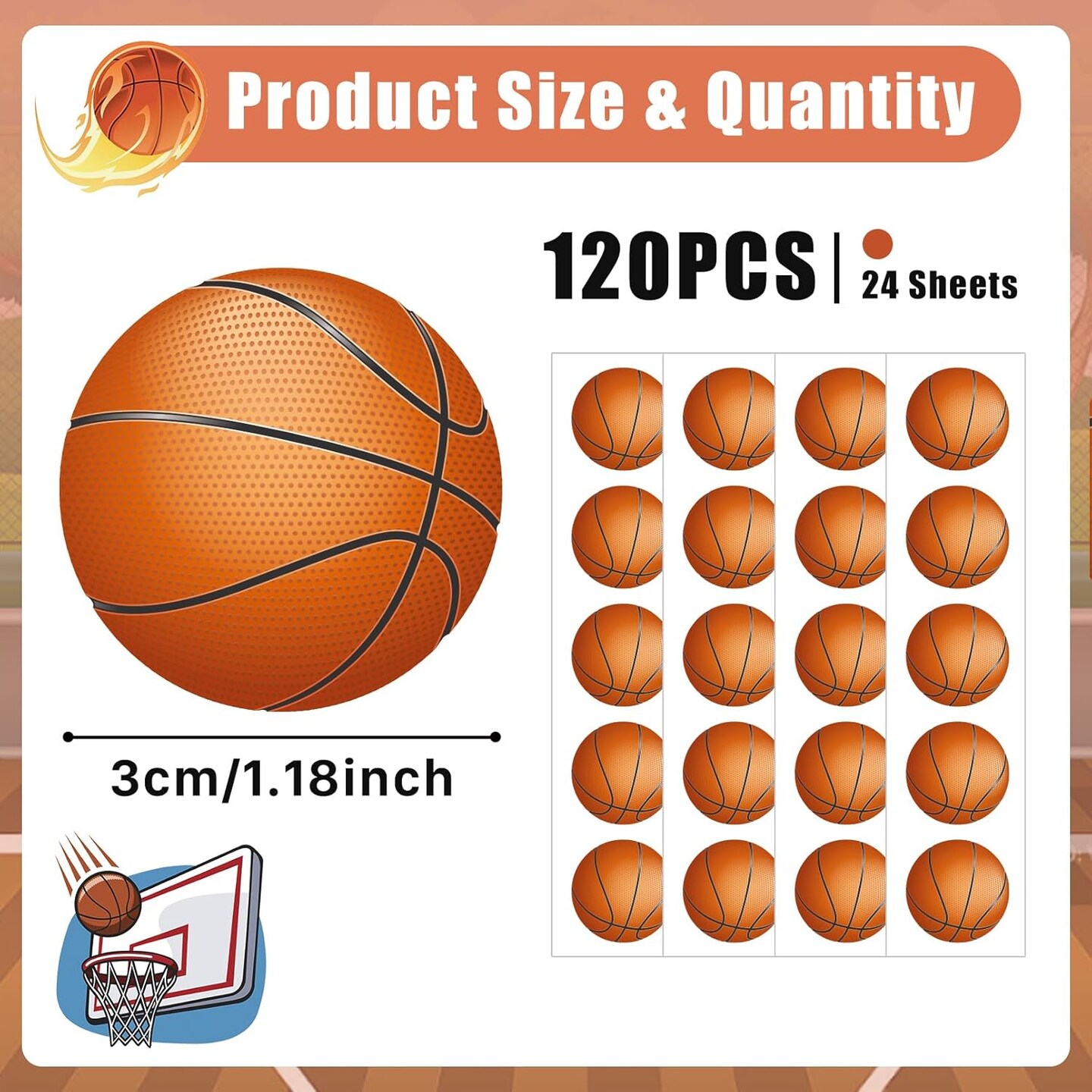 120 Pcs Basketball Stickers Vinyl, Basketball Stickers for Water Bottle Kids Girls Boys, Sports Ball Decals Waterproof for Basketball Sports