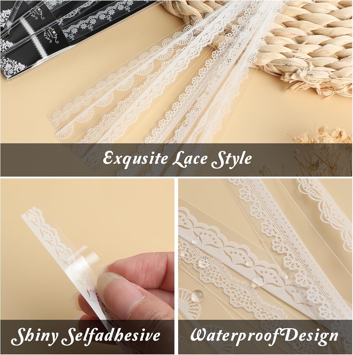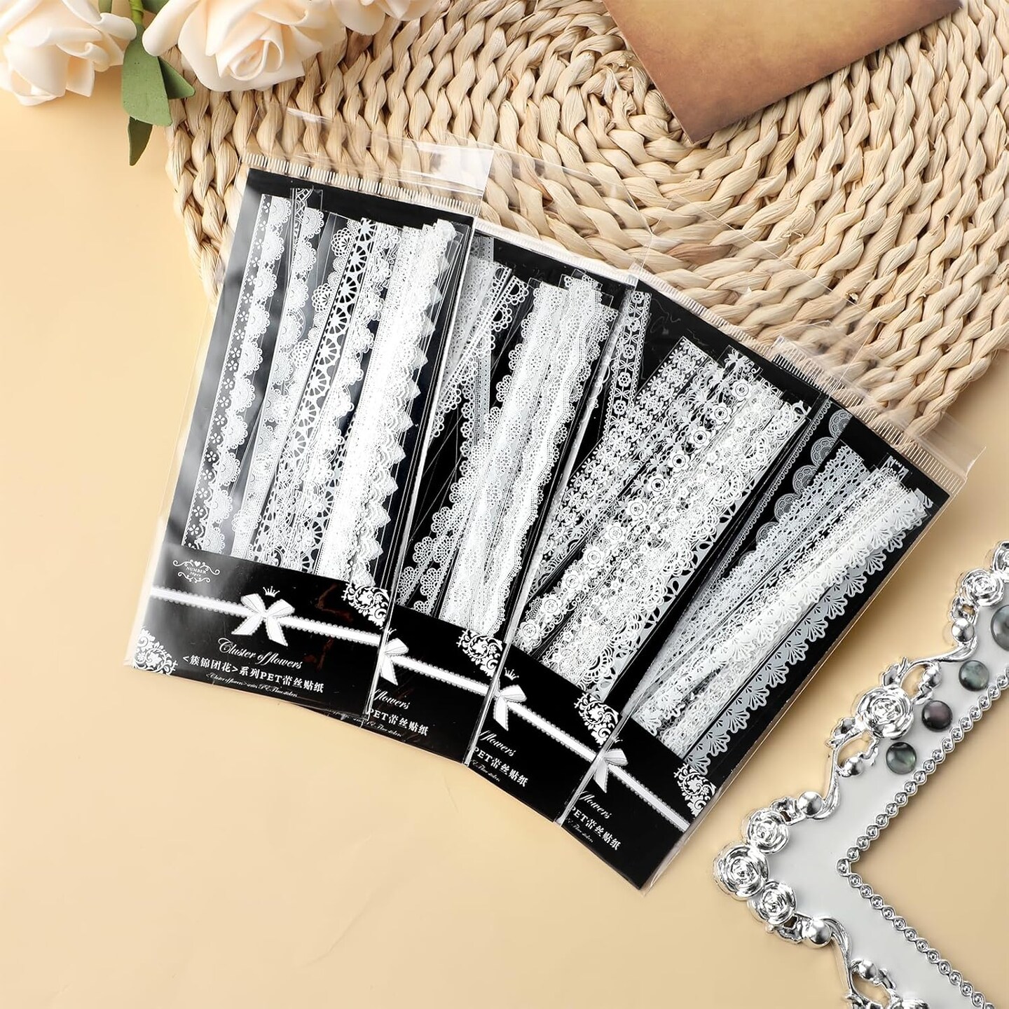 120 Pcs Lace Stickers Coquette Stickers (White)