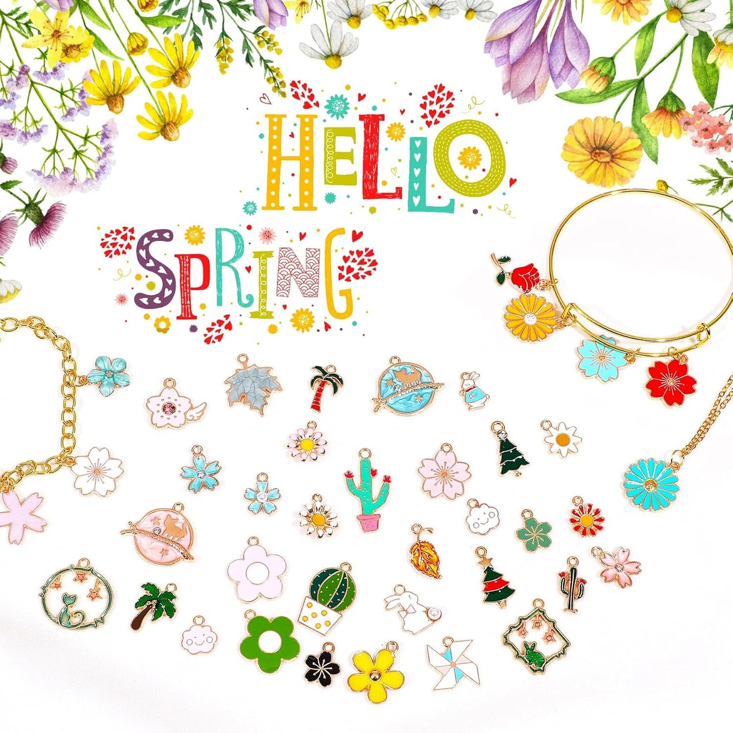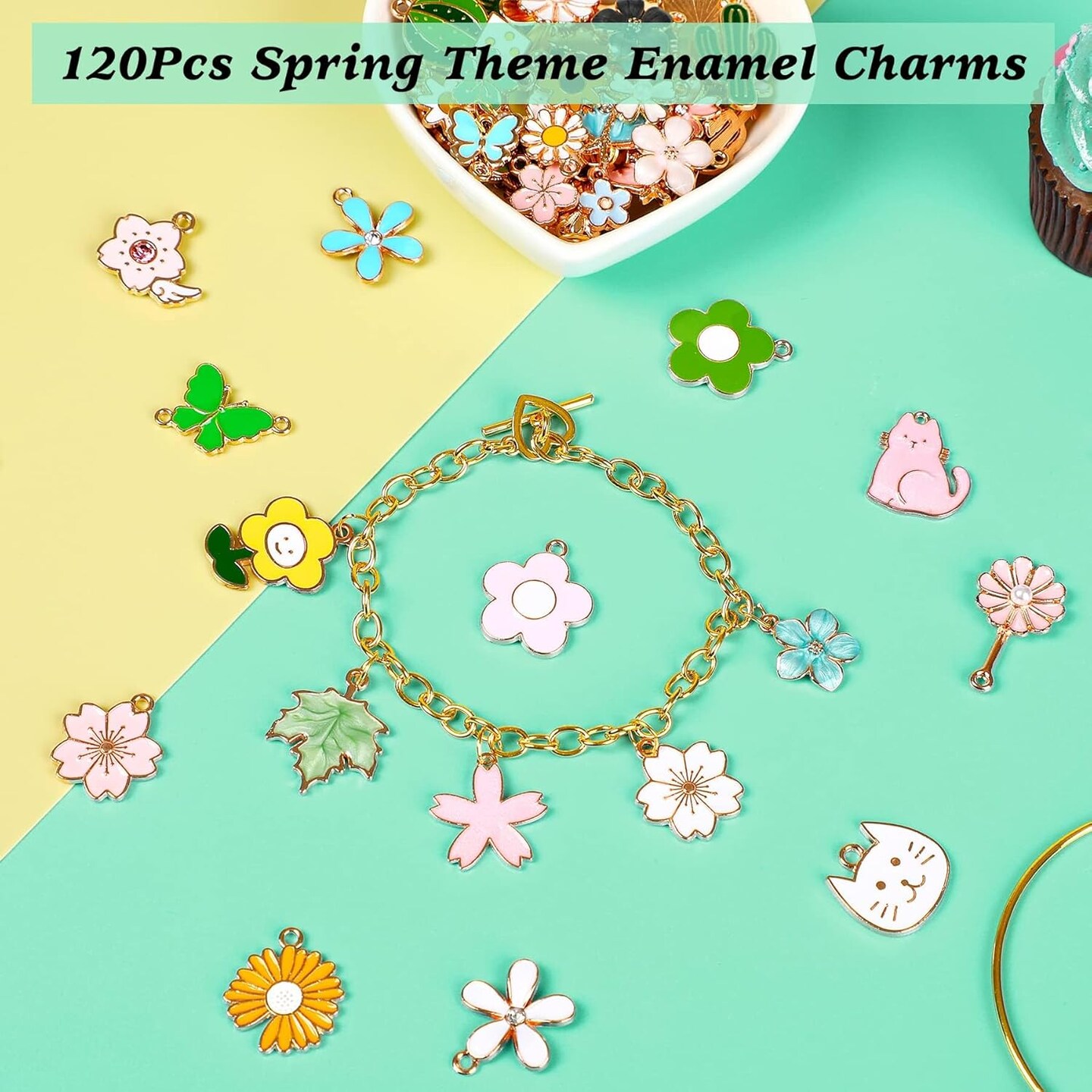 120 Pcs Spring Summer Floral Themed Charms, Flower Charms for Jewelry Making, Assorted Gold Enamel Charm Pendants for DIY Necklace Bracelet Earrings Supplies Gifts for Mom Women