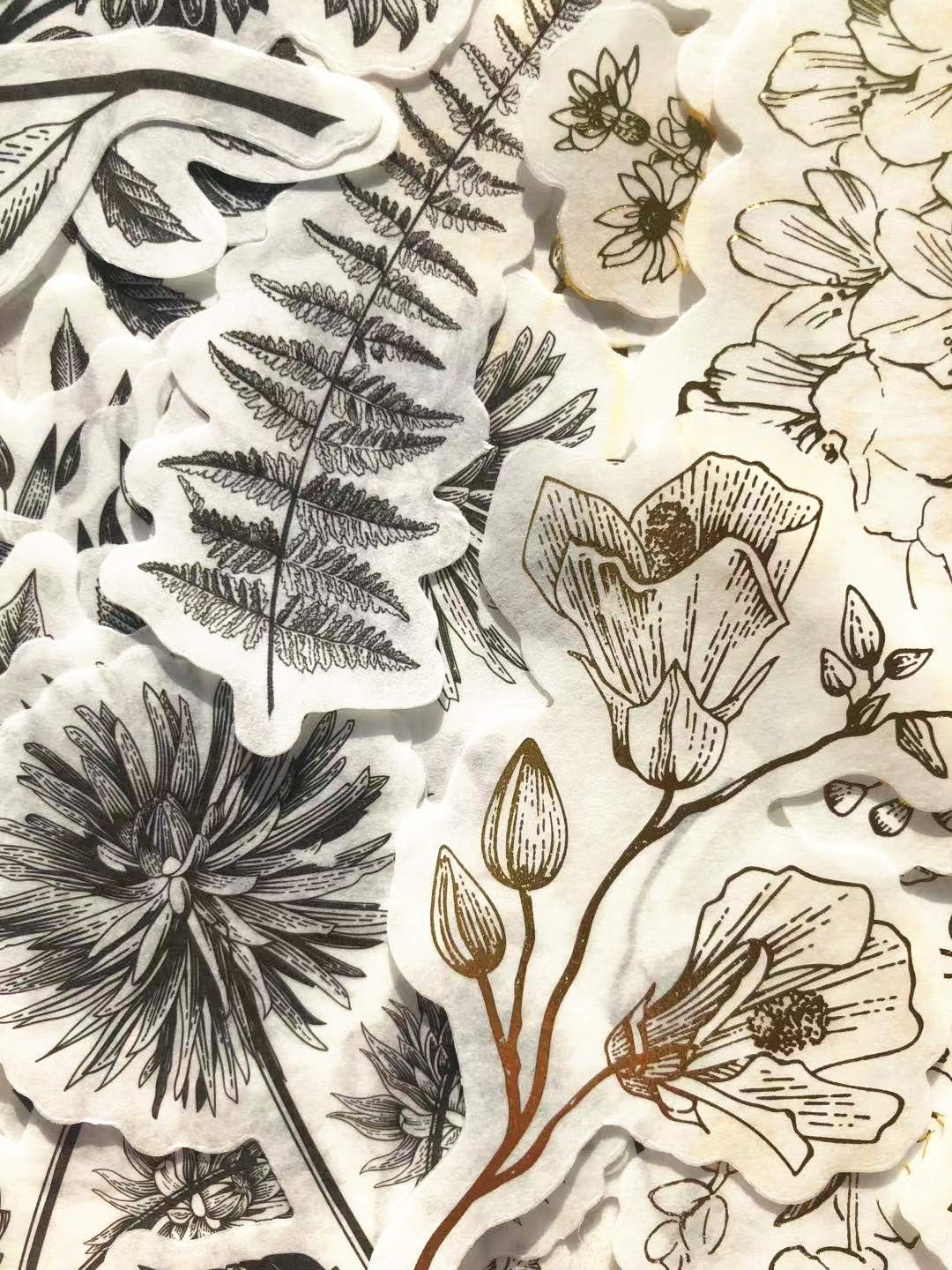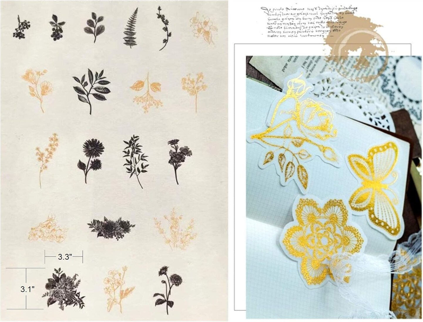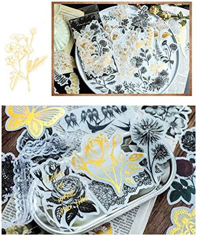 120 Pcs Vintage Zen Botany Flower Scrapbook Washi Sticker Pack (Gray/Golden) 7.5 x 3.7 x 0.1 inches