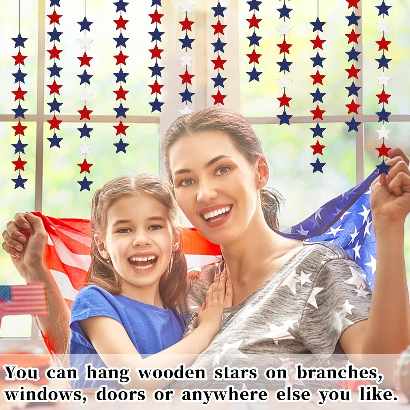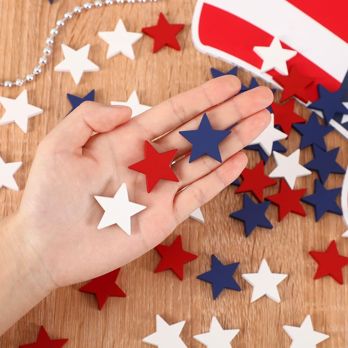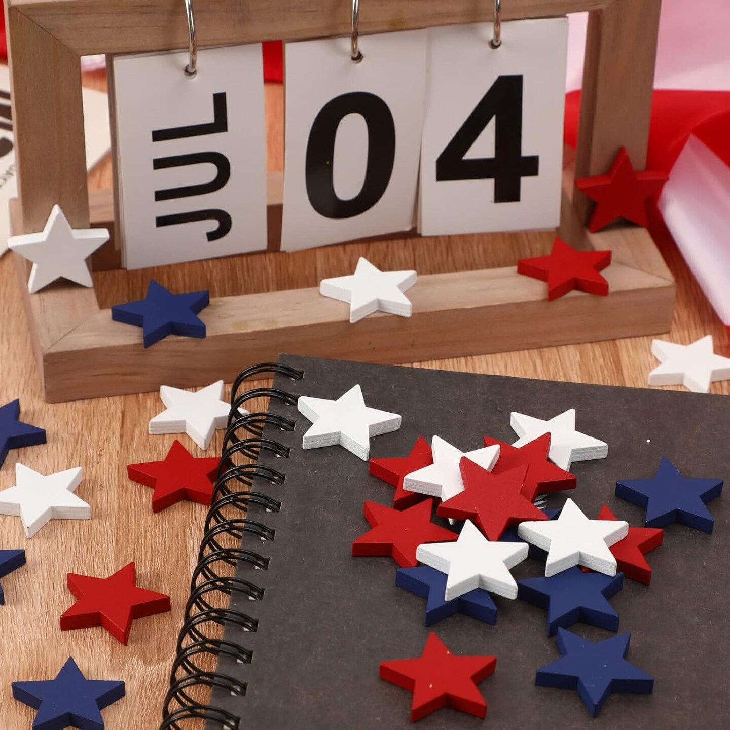 120 Pcs Wood Stars 4th of July Star for Red White and Blue Tabletop Decor