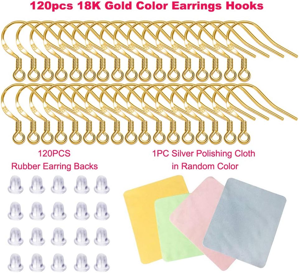120 PCS/60 Pairs 18K Gold Hypoallergenic Ear Wires,120 PCS Rubber Earring Backs