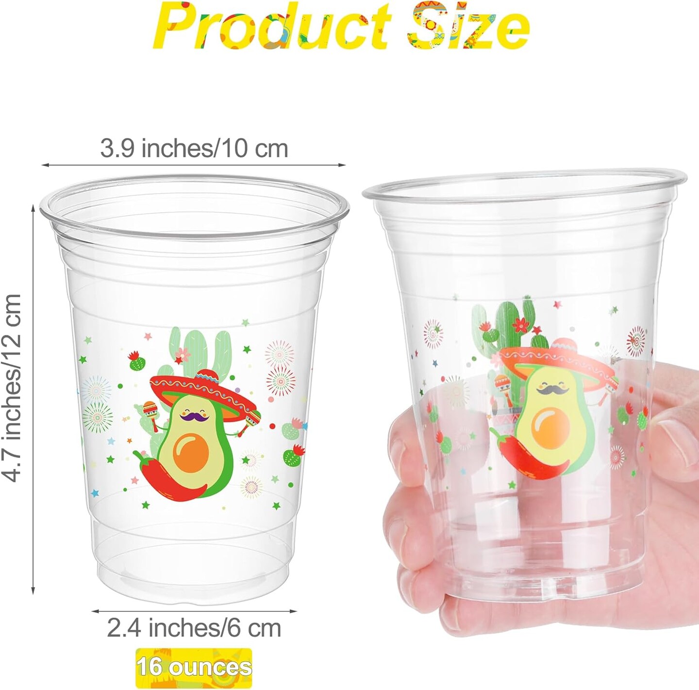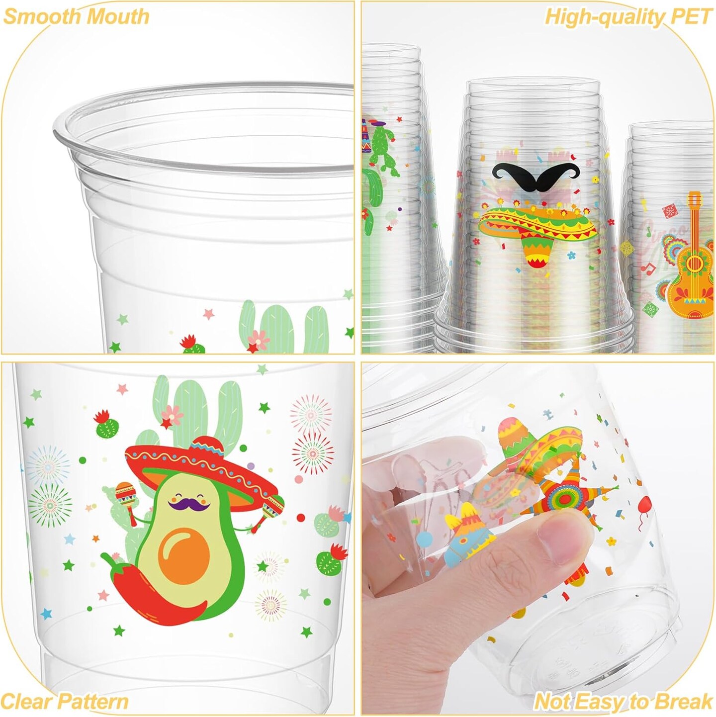 120 Pieces 16 oz Mexican Fiesta Plastic Cups Clear Disposable Cups with Double-sided Different Patterns Cinco De Mayo Drinkware Party Supplies Fiesta Taco Birthday Decorations, 4 Styles