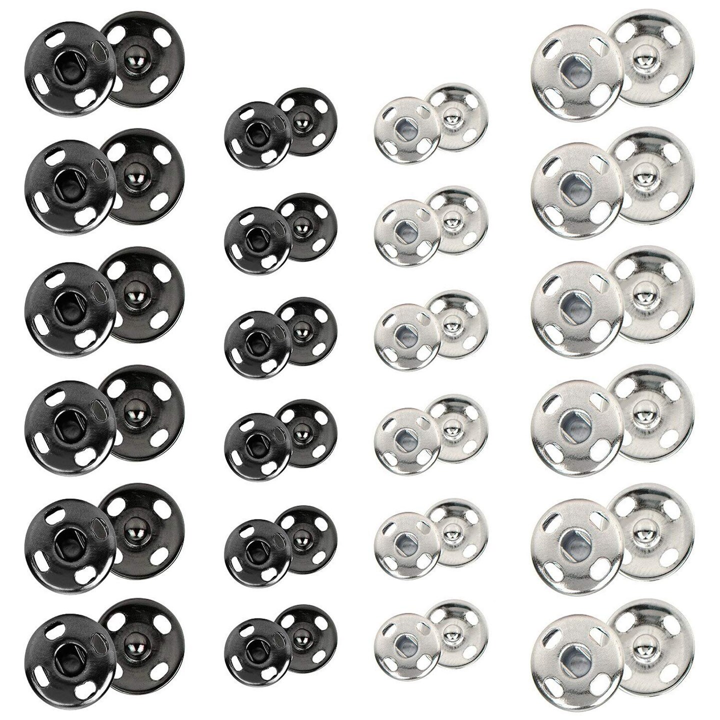 120 Sets Sew-on Snap Buttons Metal Snaps Fasteners Press Studs Buttons for Sewing, 8 mm and 10 mm,Black and Silver