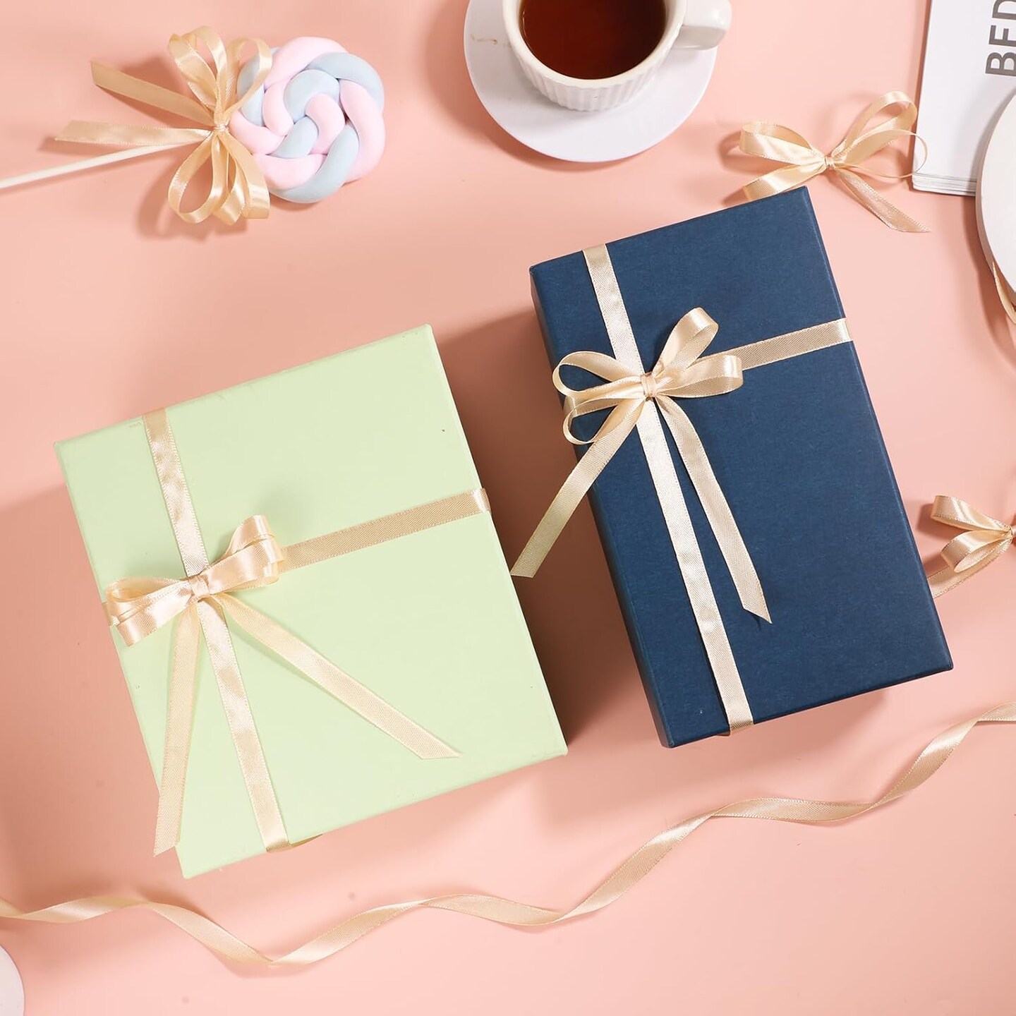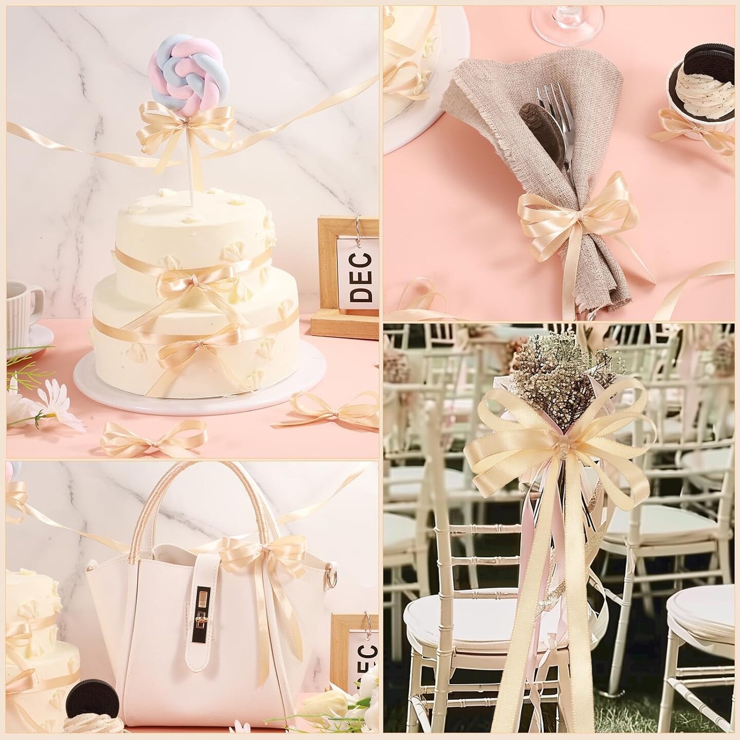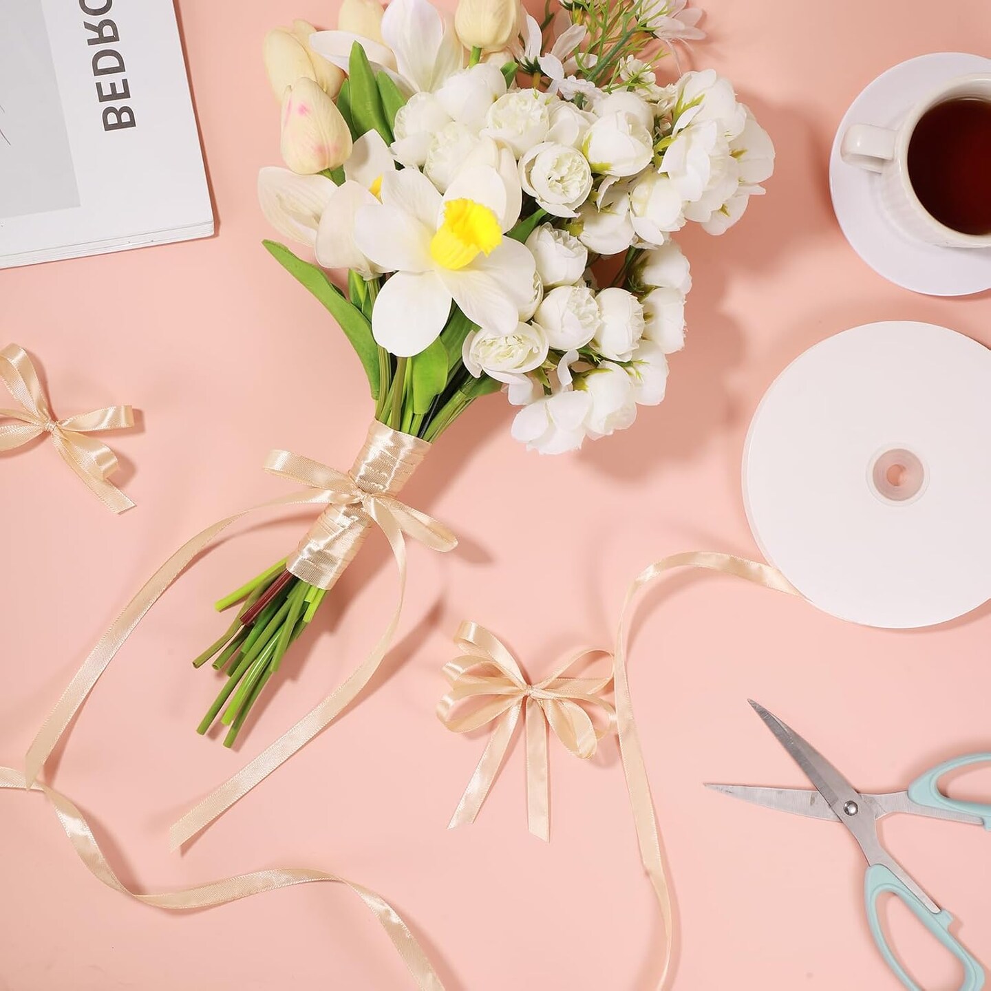 120 Yards Champagne Ribbon 3/8 Inch Thin Gold Satin Ribbon Craft Fabric Ribbon for Hair Bow Making Gift Wrapping Floral Bouquet Party Birthday Graduate Mother's Day Decorations