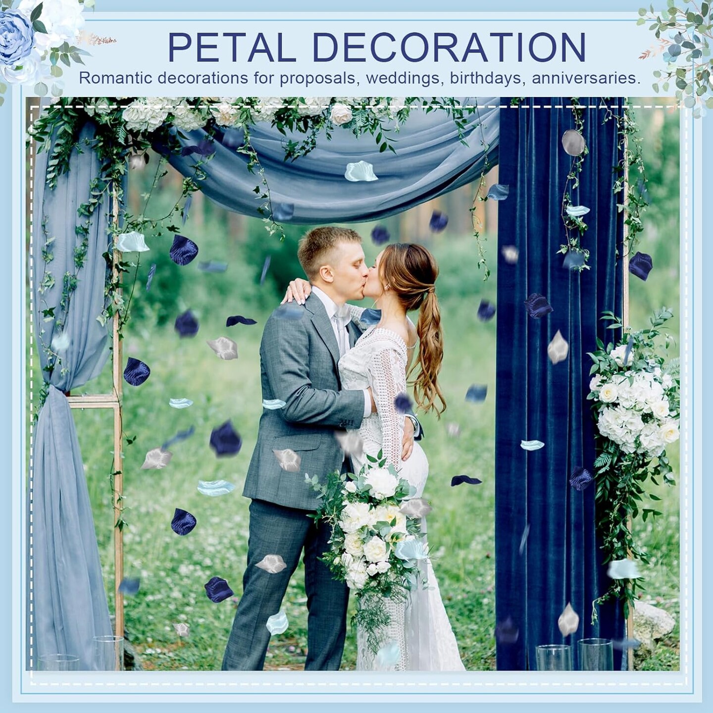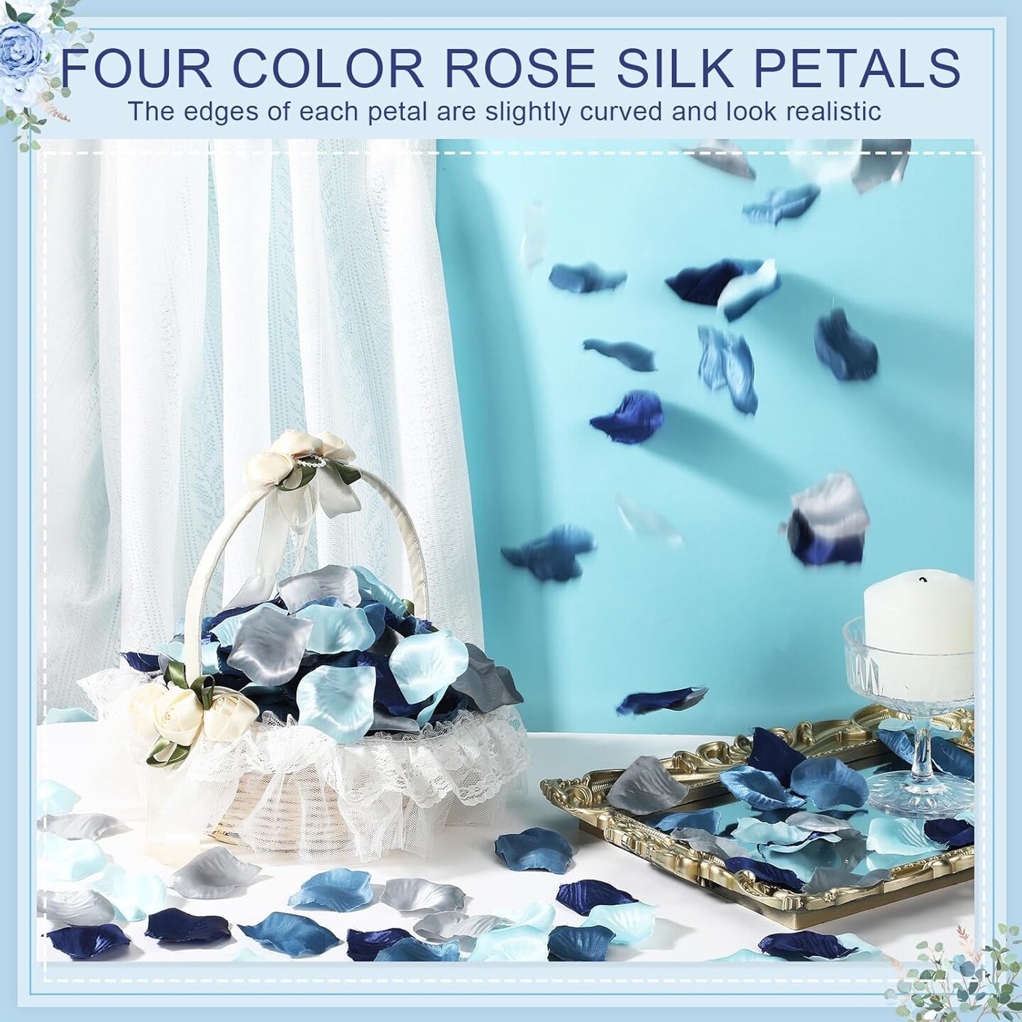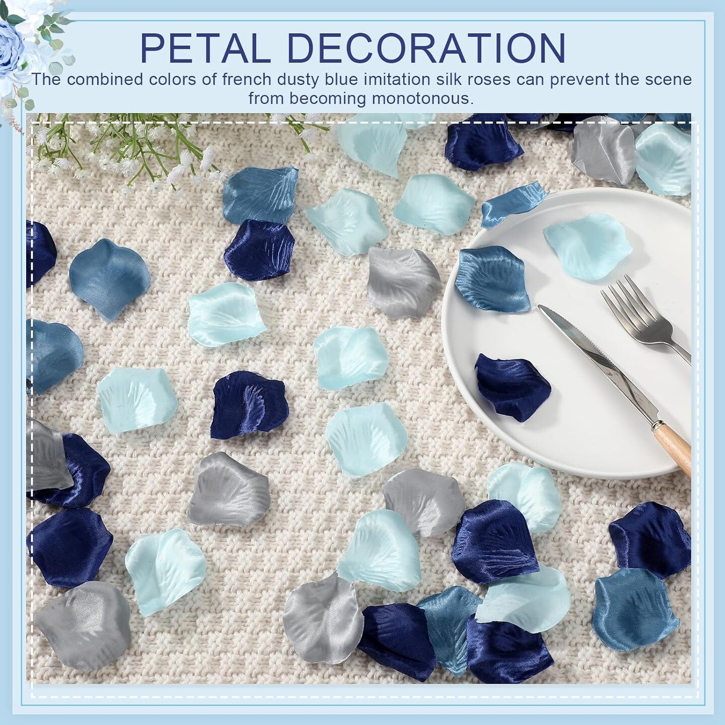 1200 Pcs French Dusty Blue Silk Rose Petals – Artificial Flower Petals for Weddings, Flower Girl Baskets, Aisle Scatter, Dinner Centerpieces, Parties, Bridal Showers, and Romantic Night Décor