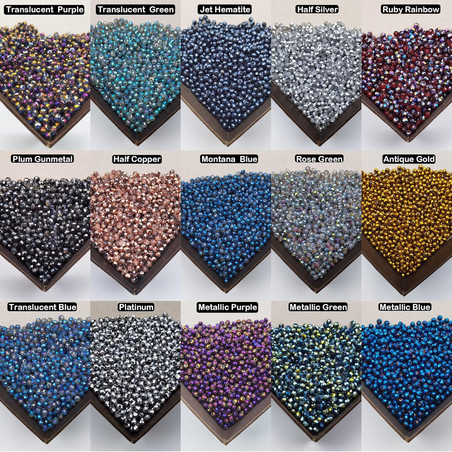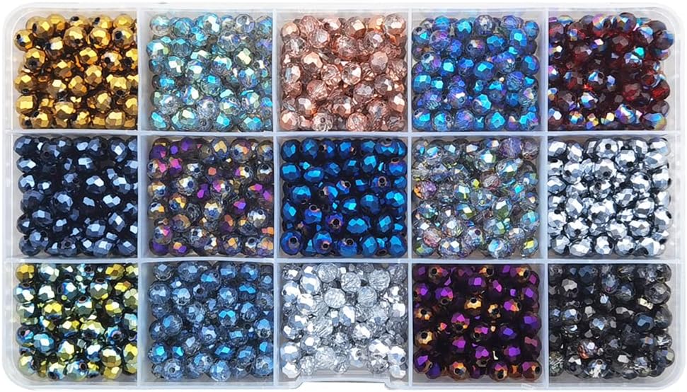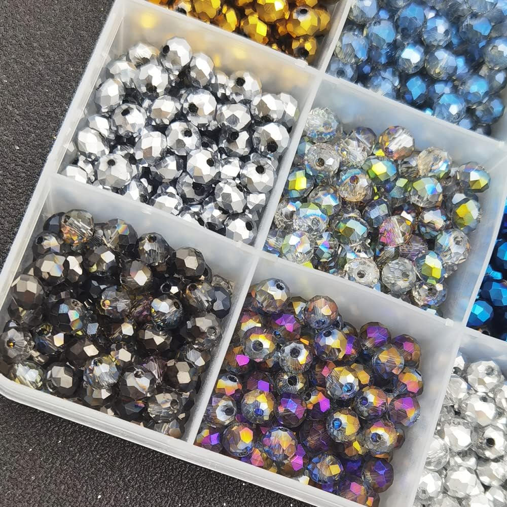 1200pcs 6mm Multicolor Electroplate Rondelle Glass Beads for Jewelry Making Faceted Briolette Shape Crytal Spacer Beads Assortments Supplies for Bracelet Necklace with Storage Box