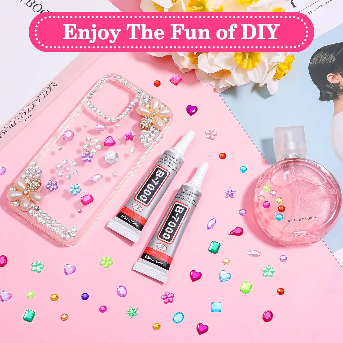 1200Pcs Flat Back Craft Gems with 2Pcs B7000 Jewelry Glue - Small