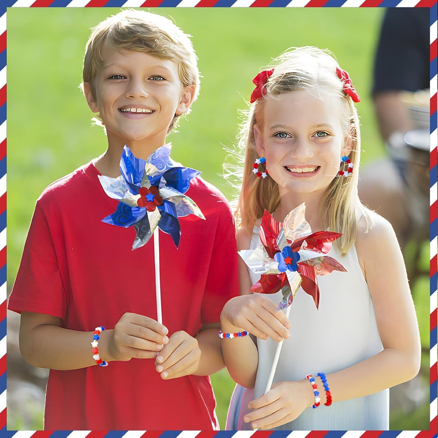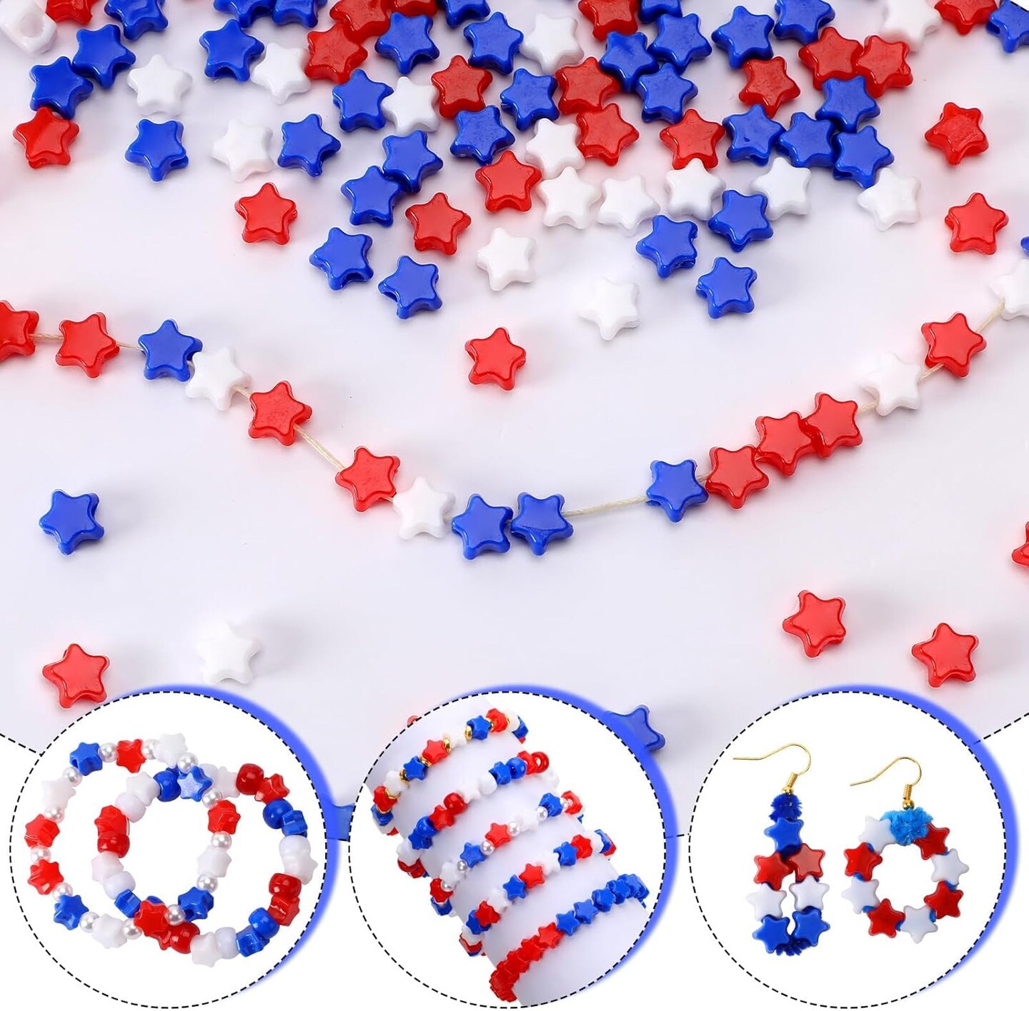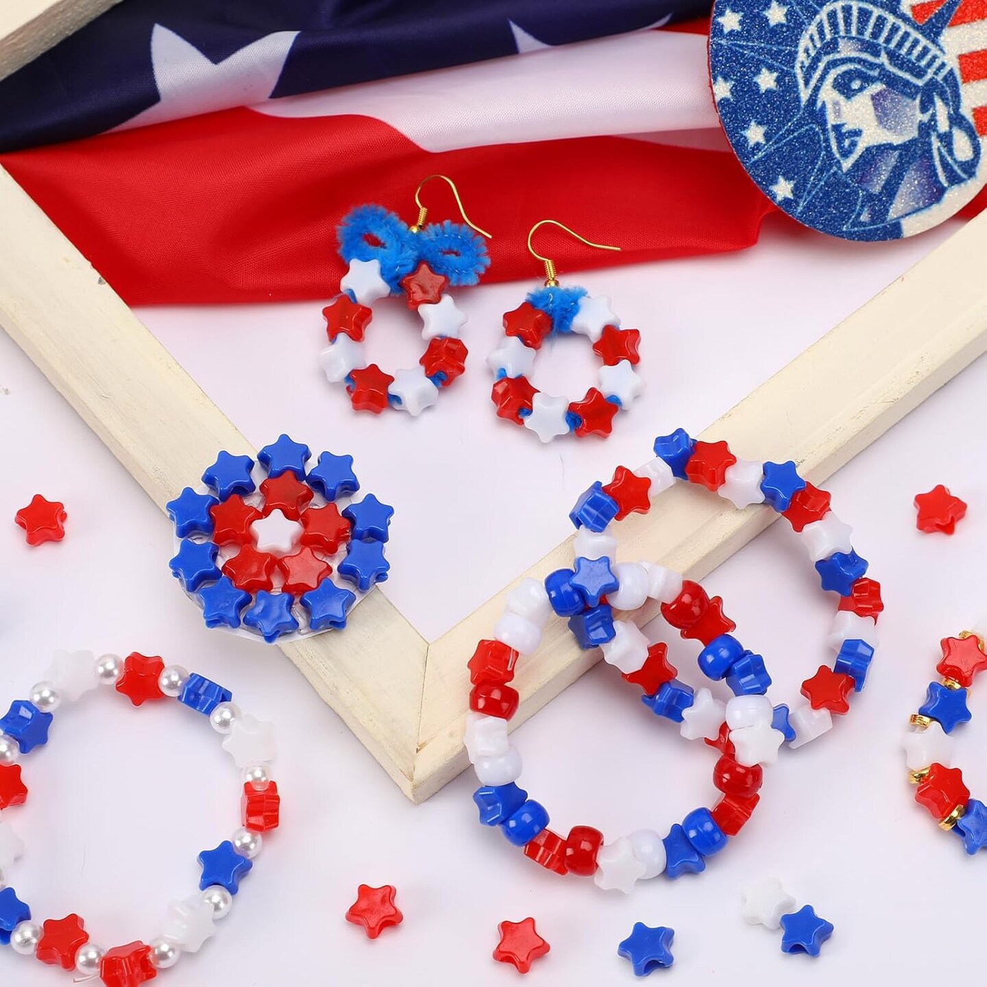 1200pcs Red White and Blue Beads, 4th of July Beads Patriotic Star Shaped Beads for Crafts