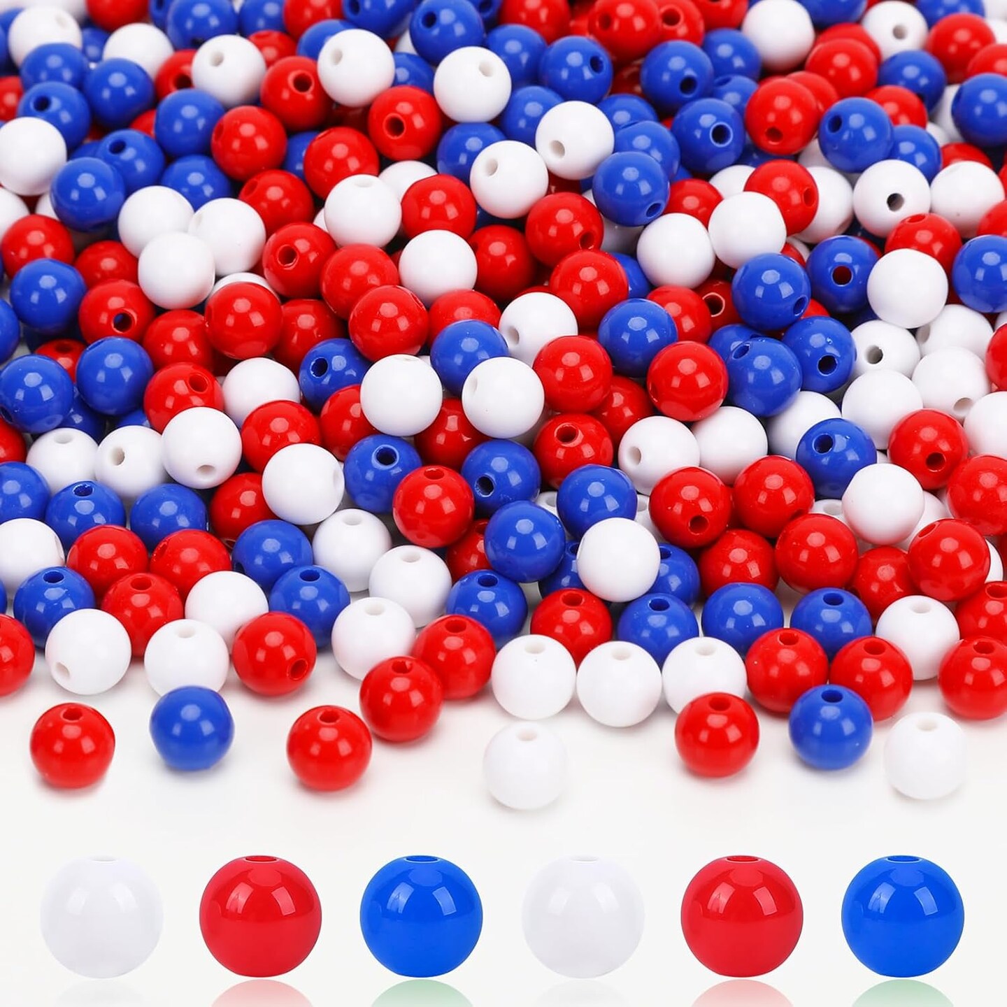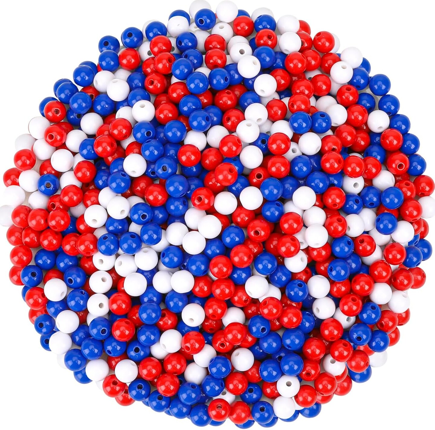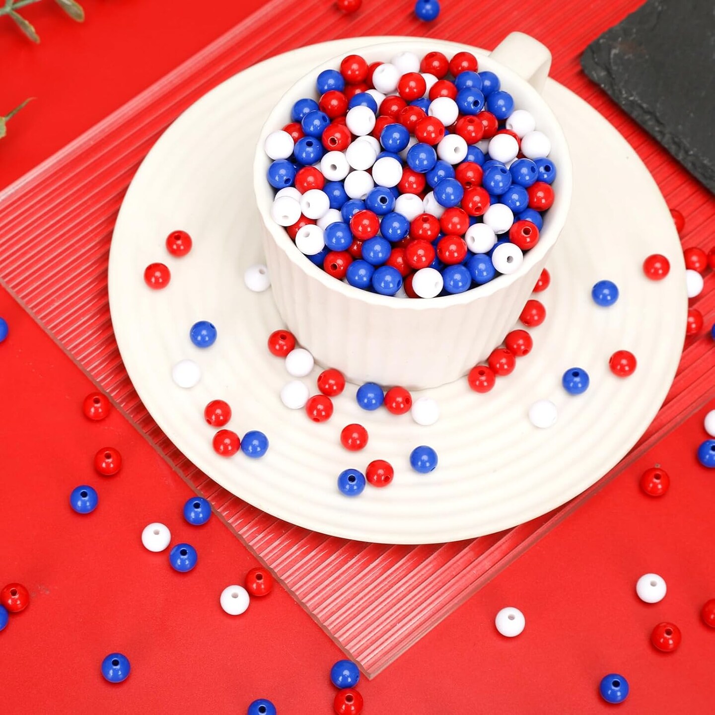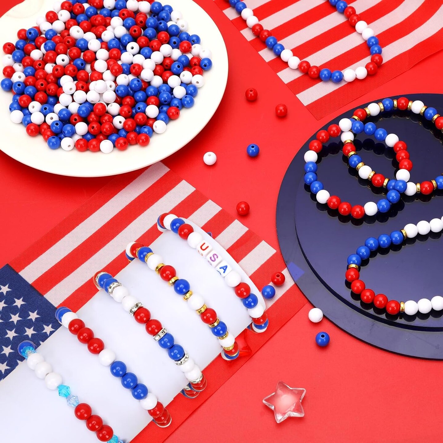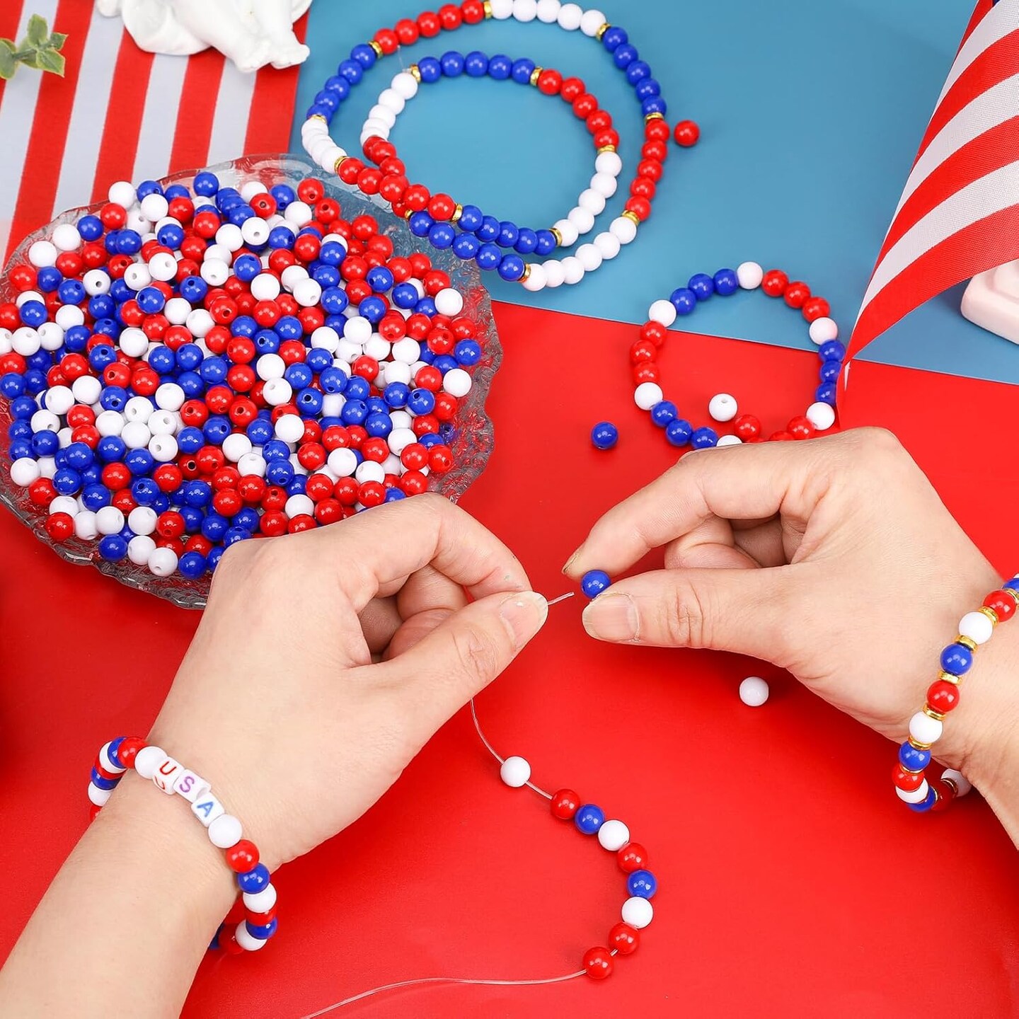 1200pcs Red, White & Blue Beads – Round Patriotic Beads for 4th of July Jewelry Making, DIY Necklaces, Bracelets, Hair Accessories, and Independence Day Crafts