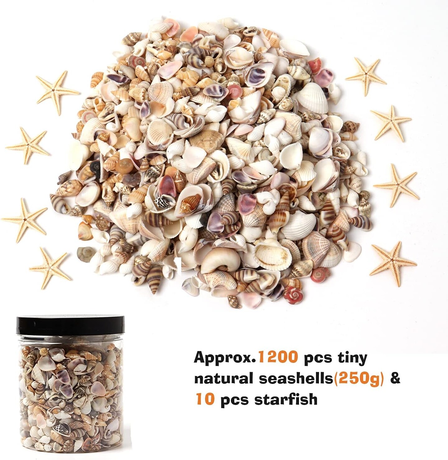 1200-Piece Tiny Sea Shells & Starfish Set – Natural Mixed Ocean Spiral Seashells for Home Decor, Wedding, Candle Making, Beach-Themed Party, DIY Crafts & Vase Filler