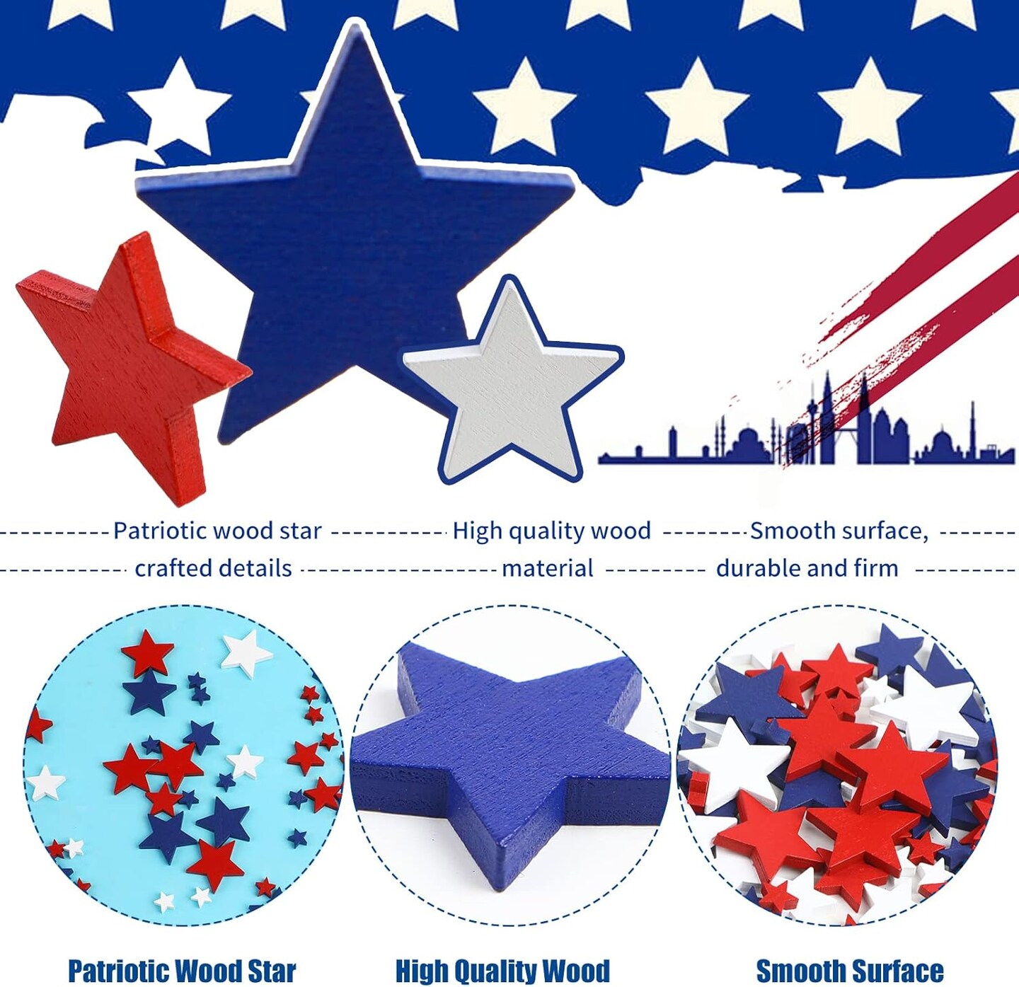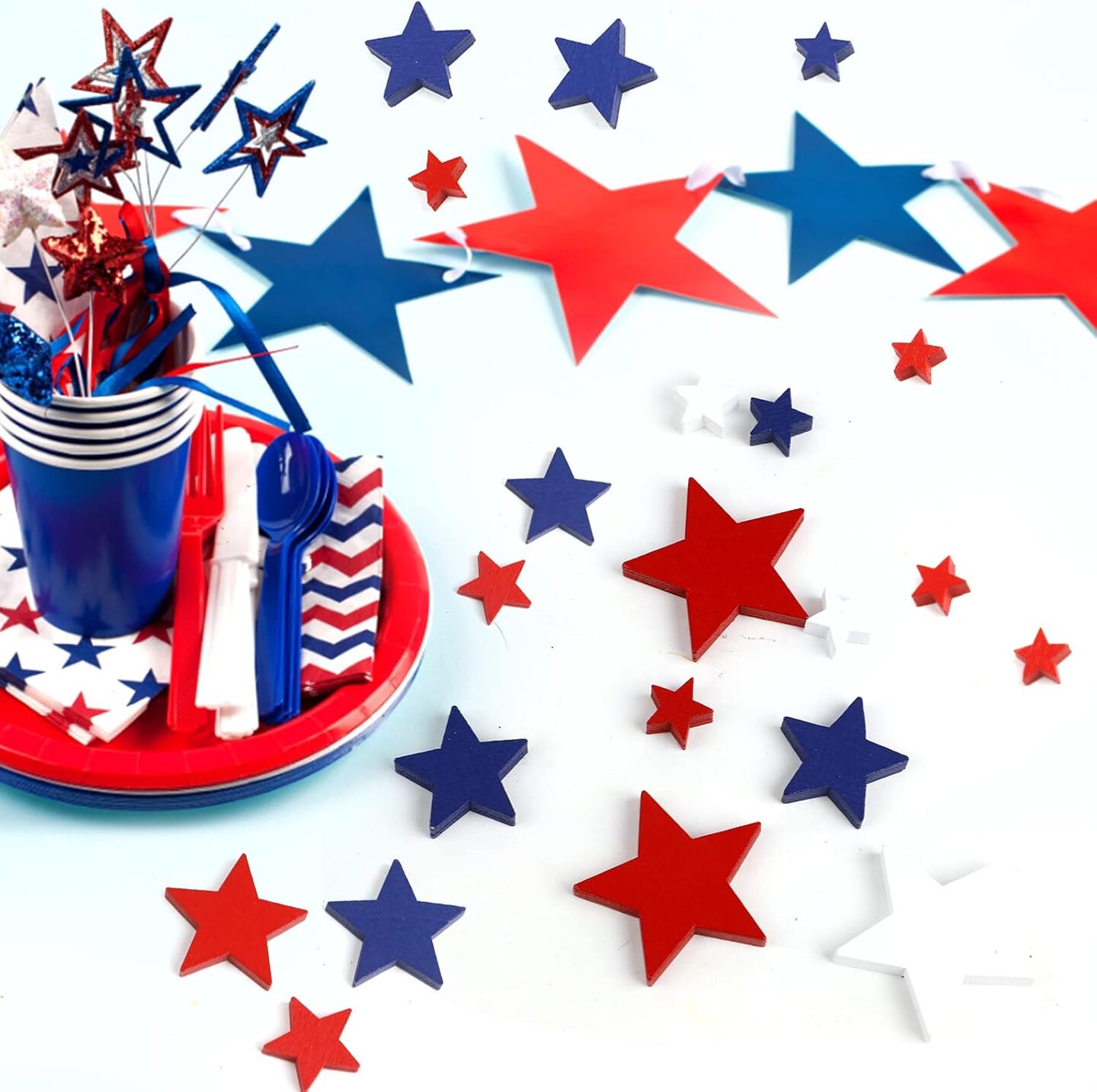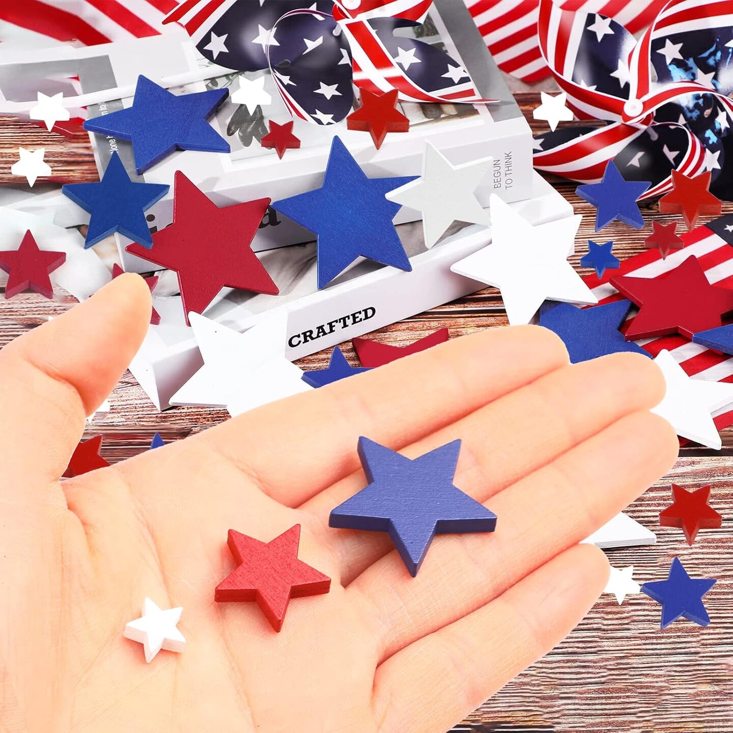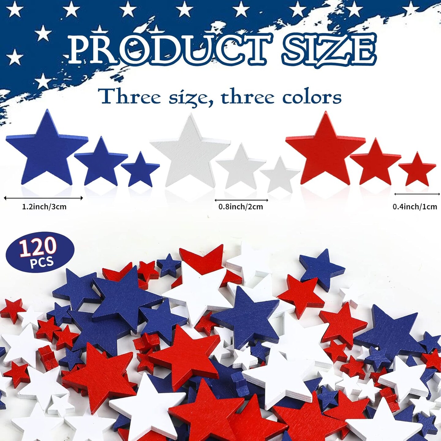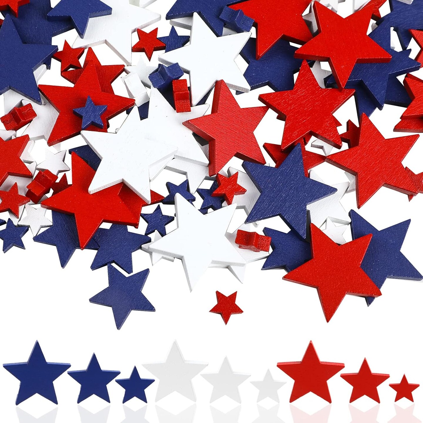 120-Pack Patriotic Wooden Star Ornaments for 4th of July & Memorial Day Crafts