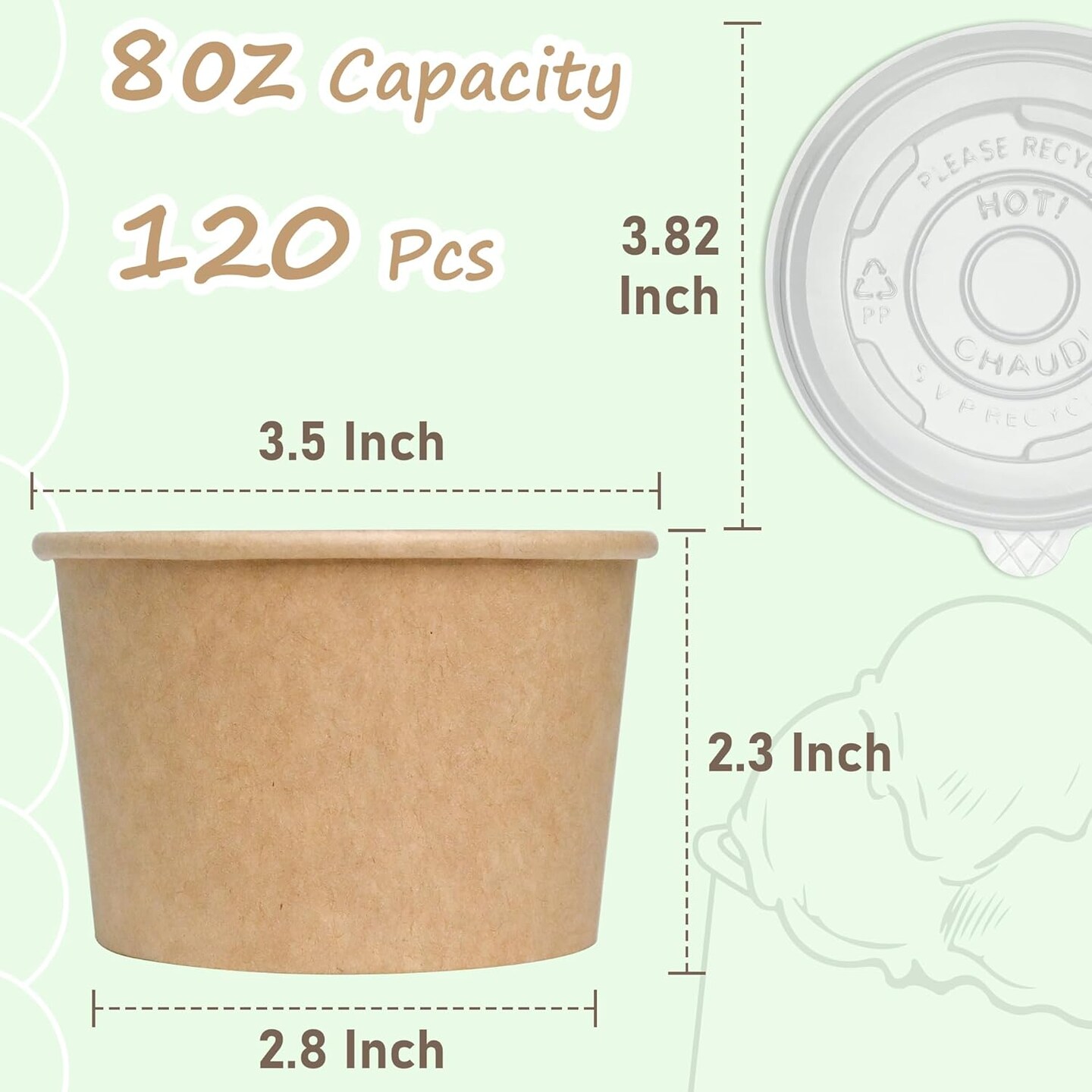 120pcs 8oz Disposable Dessert Bowls with Lids